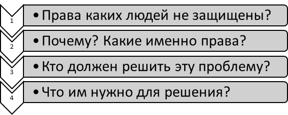 В этом разделе рассмотрим, что такое подход, основанный на соблюдении прав человека, и как он нам может помочь в реализации кампании по сбору подписей и внедрению изменений.