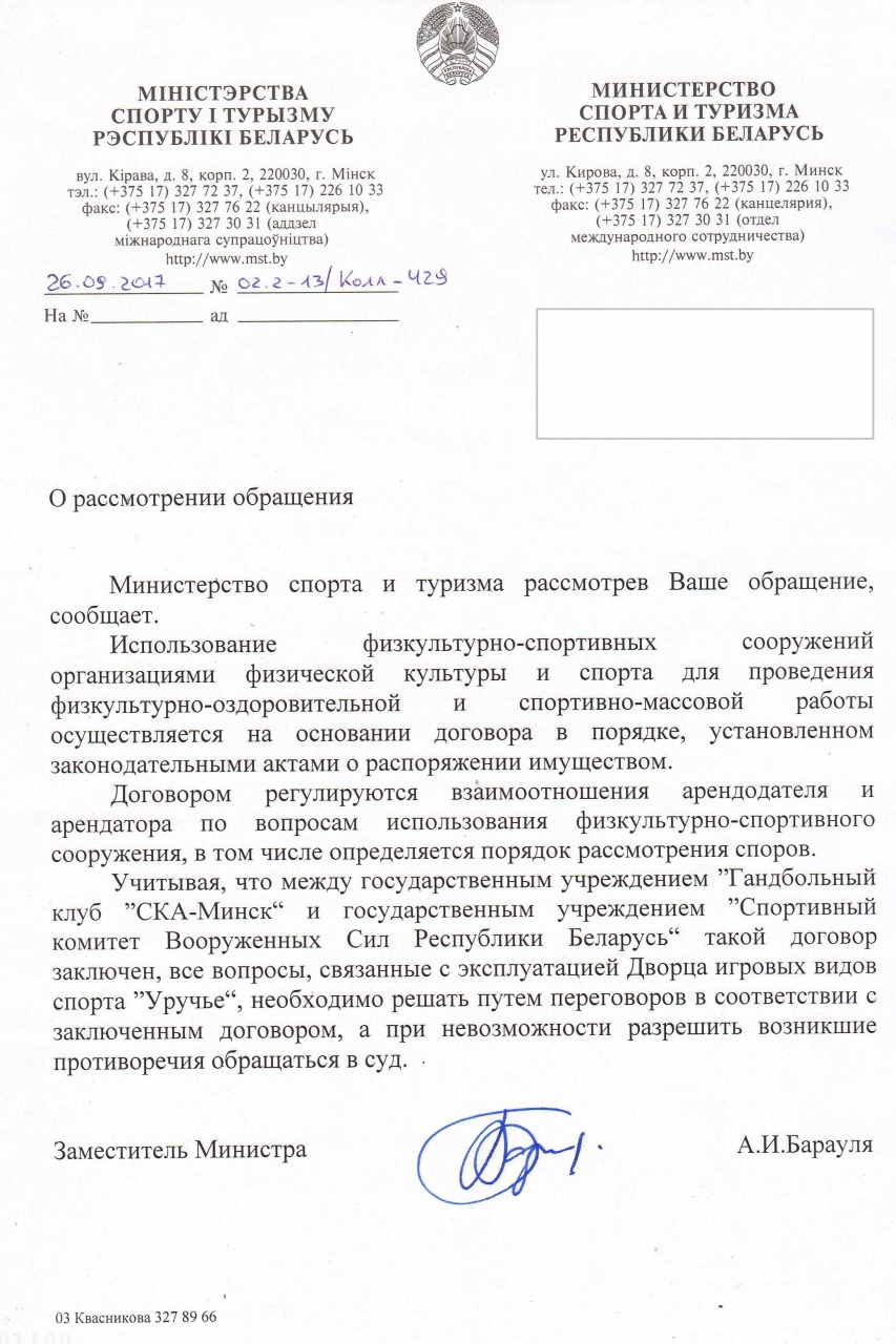Госорганы не вправе вмешиваться в договорные отношения между Гандбольным клубом СКА-Минск и Спортивным комитетом ВС РБ.