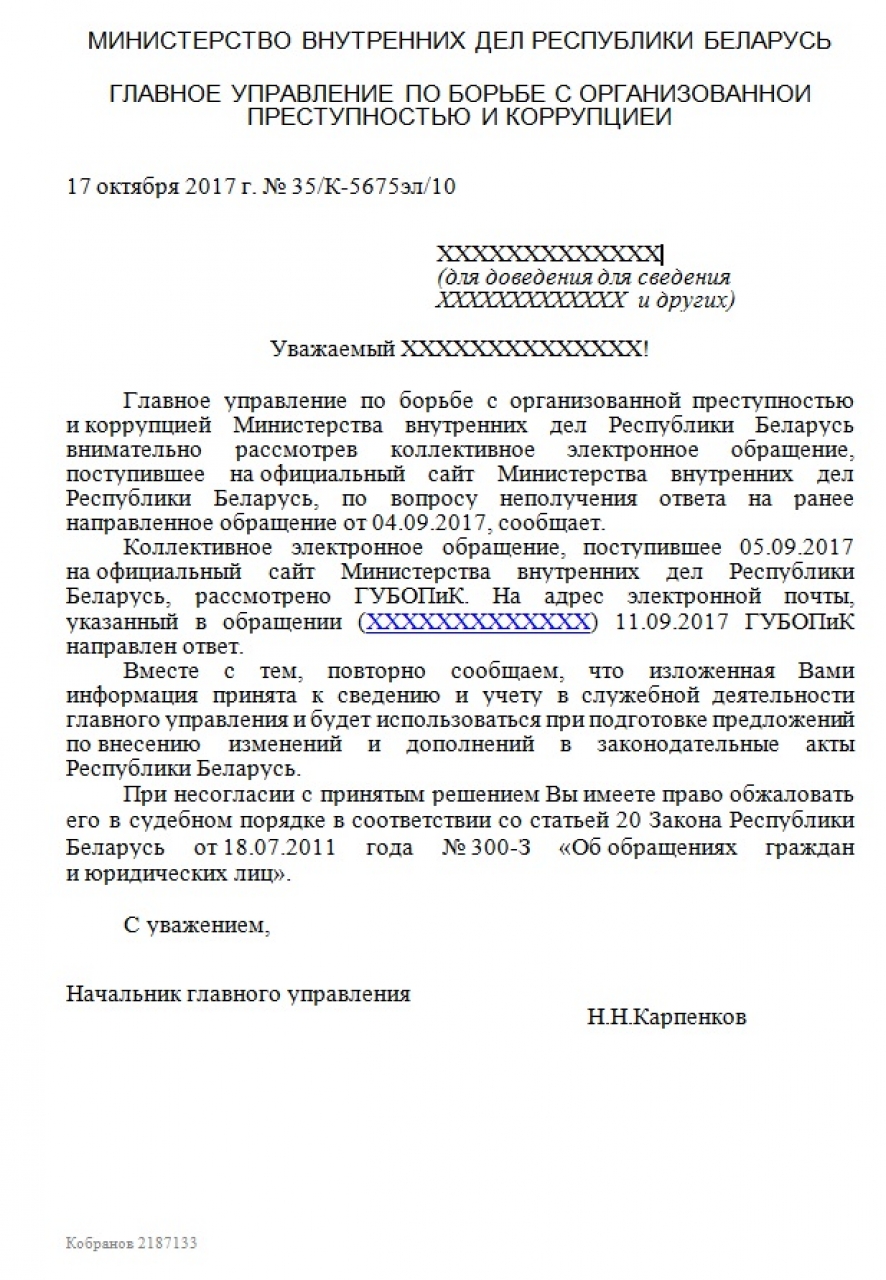 Изложенная информация принята к сведению и учету в служебной деятельности и будет использоваться при подготовке предложений по внесению изменений и дополнений в законодательные акты Республики Беларусь.