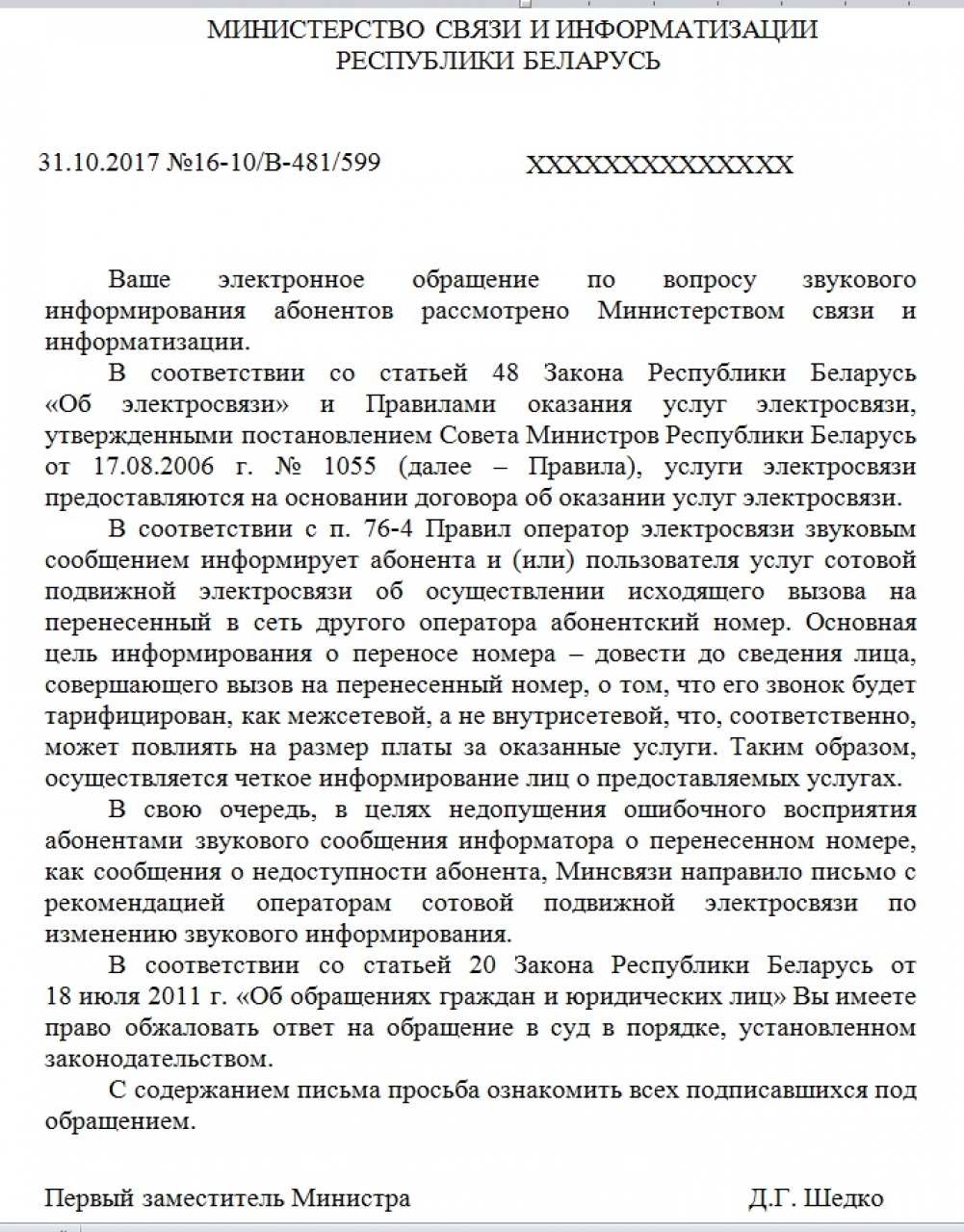 Минсвязи направило письмо c рекомендацией операторам сотовой подвижной электросвязи по изменению звукового информирования.