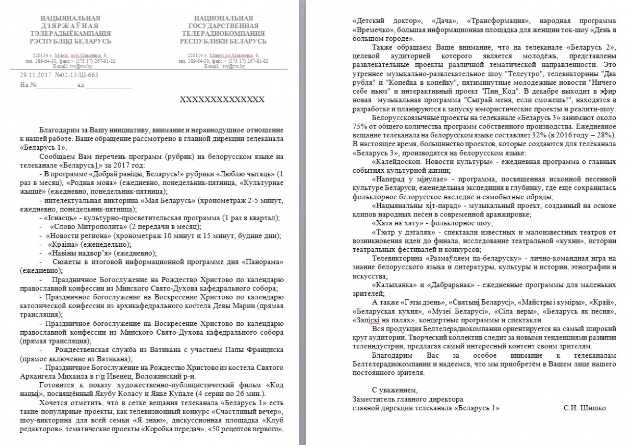 В 2014 году Глава государства высказал намерение создать совместный белорусско-украинский канал [3]. Полагаем, что более актуальным будет открытие совместного белорусско-польского телеканала в виде создания местной редакции Белсата (по примеру НТВ-Беларусь) либо в виде ребрендинга уже существующего белорусского телеканала (например, Беларусь-3) с добавлением продуктов Белсата. Просим начать переговоры с телеканалом Белсат по этому вопросу, особенно учитывая что телеканал Белсат эту идею поддерживает, а так же множество граждан нашей страны.