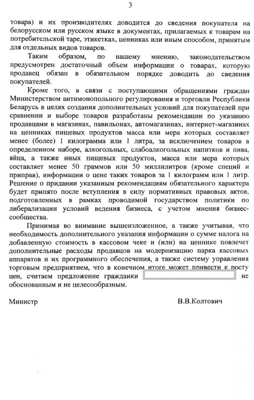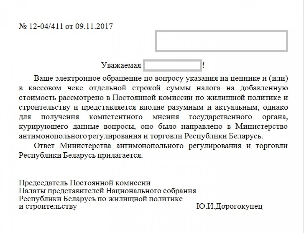 При осуществлении расчетов между юридическими лицами в счетах прописывается стоимость товара/услуги и отдельно сумма НДС, а вот физлица лишены возможности видеть сумму налога, включенного в цену. Хотя во многих других странах НДС пробивается в чеке отдельной строкой. Нужно перенять этот полезный опыт и обязать продавцов указывать на ценнике и/или в чеке сумму НДС.