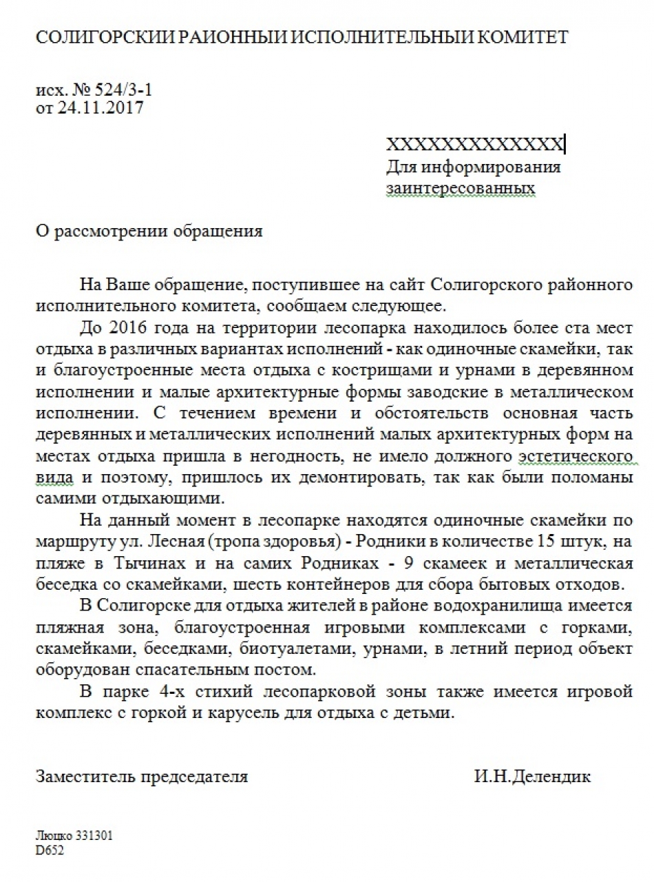 Мы, граждане Республики Беларусь, и в частности жители города Солигорска, просим обратить внимание Солигорского райисполкома на полное отсутствие удобств в лесопарковой зоне нашего города. А именно: отсутствие каких-либо мест для сидения, столиков, биотуалетов и урн для мусора, в связи с чем лесопарковая зона загрязняется, а у жителей города нет возможности отдохнуть на природе, особенно с детьми.