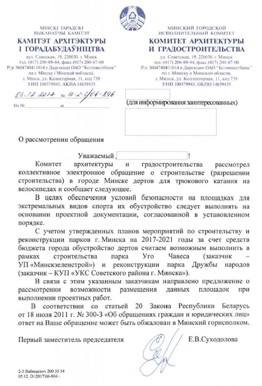 Просьба построить или дать разрешение на постройку дертов в городе Минске. Дерты нужны для изучения тех трюков, которые нельзя делать в скейт парке.