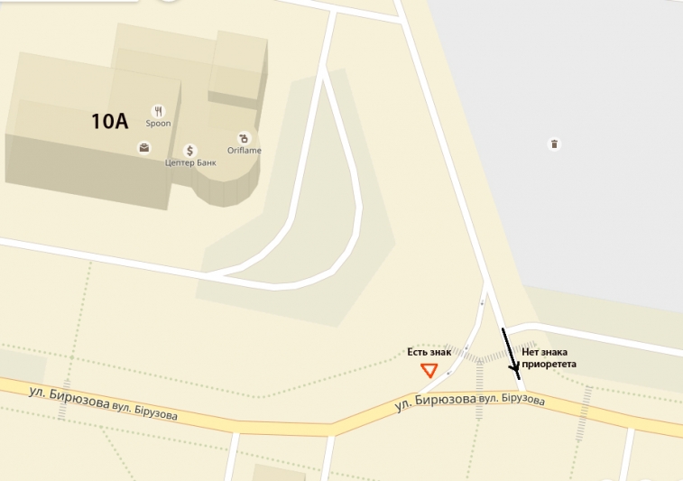 Нет знака приоритета на ул.Бирюзова, 10А
