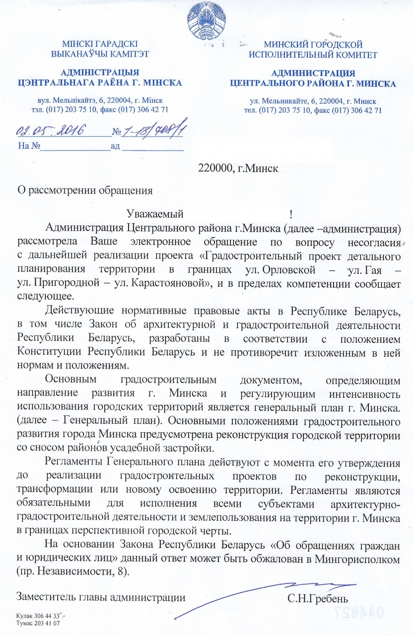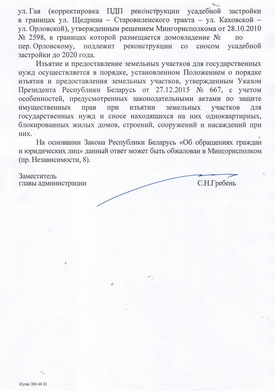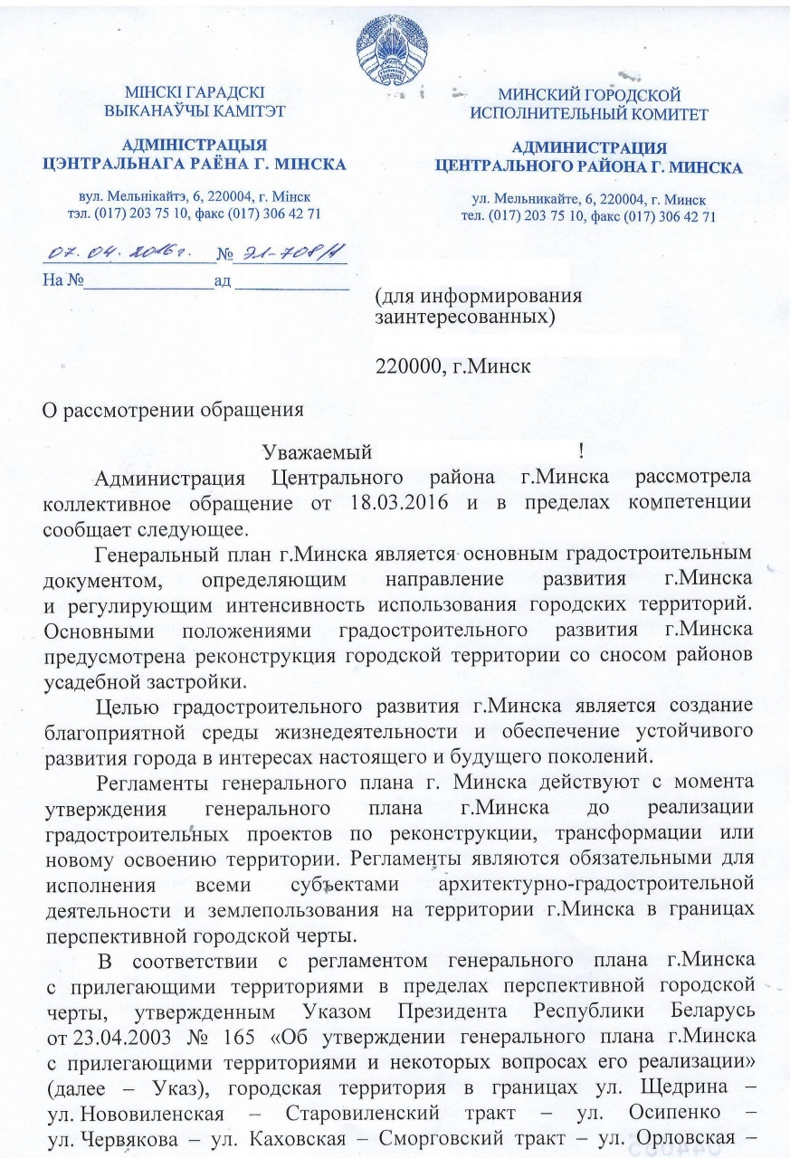 Генеральным планом г.Минска предусмотрен снос усадебной застройки, т.к. она является основным источником загрязнения подземных вод водозабора "Новинки", и данная территория имеет высокую градостороительную ценность в силу того, что примыкает к 2-му кольцу.