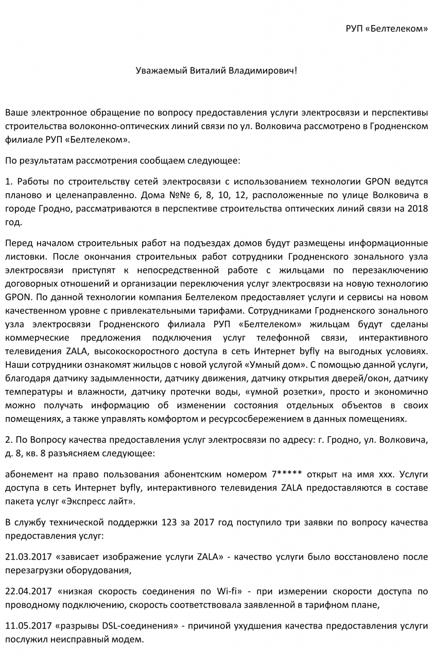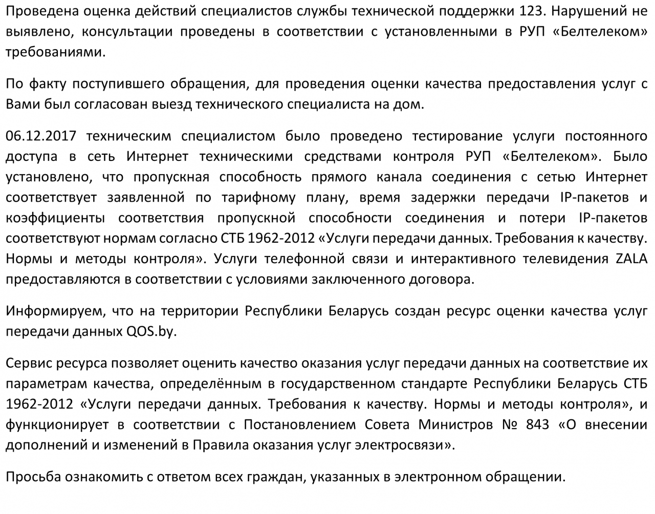 Плохо работает городская телефонная связь по ул.Волковича в г.Гродно, а также интернет. При звонке в тех. поддержку, говорят, что все нормально, хотя в вечерние часы невозможно включить одновременно ZALA и пользоваться интернетом.