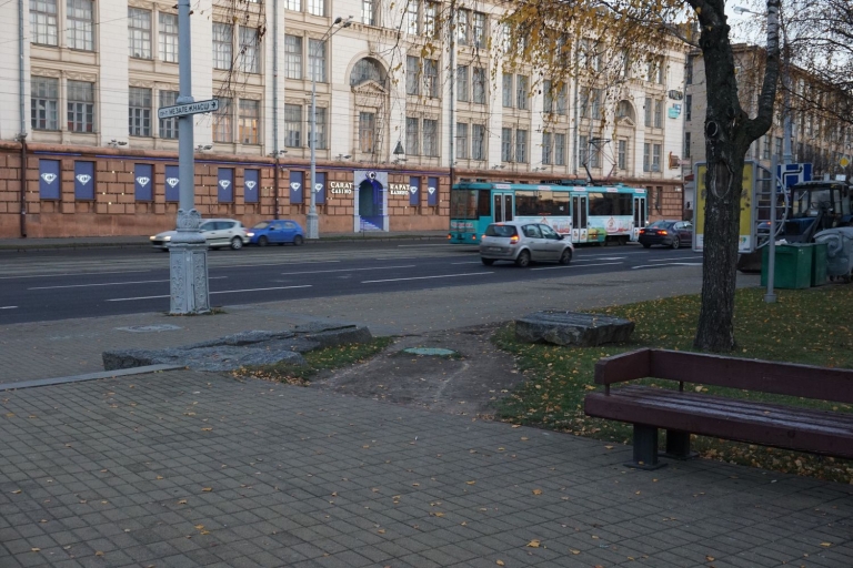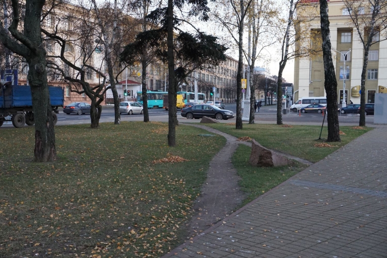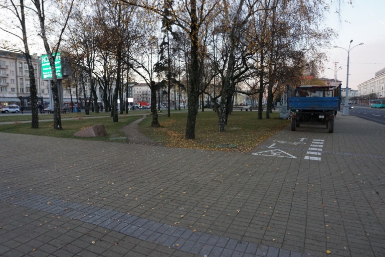 Уже несколько лет наблюдается постоянная картина борьбы муниципальных служб с жителями города на площади Якуба Коласа. Люди, двигающиеся со стороны улицы Якуба Коласа к автобусной остановке на площади по проспекту Независимости и к подземному переходу, либо в обратном направлении, предпочитают идти напрямую по газону, т.к. иначе среди вариантов либо три ступеньки лестницы не по прямой, либо зигзагообразное движение вдоль парковки напротив СОК "Олимп".