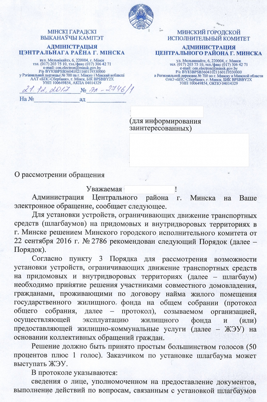 Убедительно просим Вас защитить нас и наших детей пока это не привело к трагедии, установив шлагбаум или другое устройство, способное решить эту проблему на въезде на придомовую и пришкольную территорию (от арки справа). Затраты жильцы готовы взять на себя.