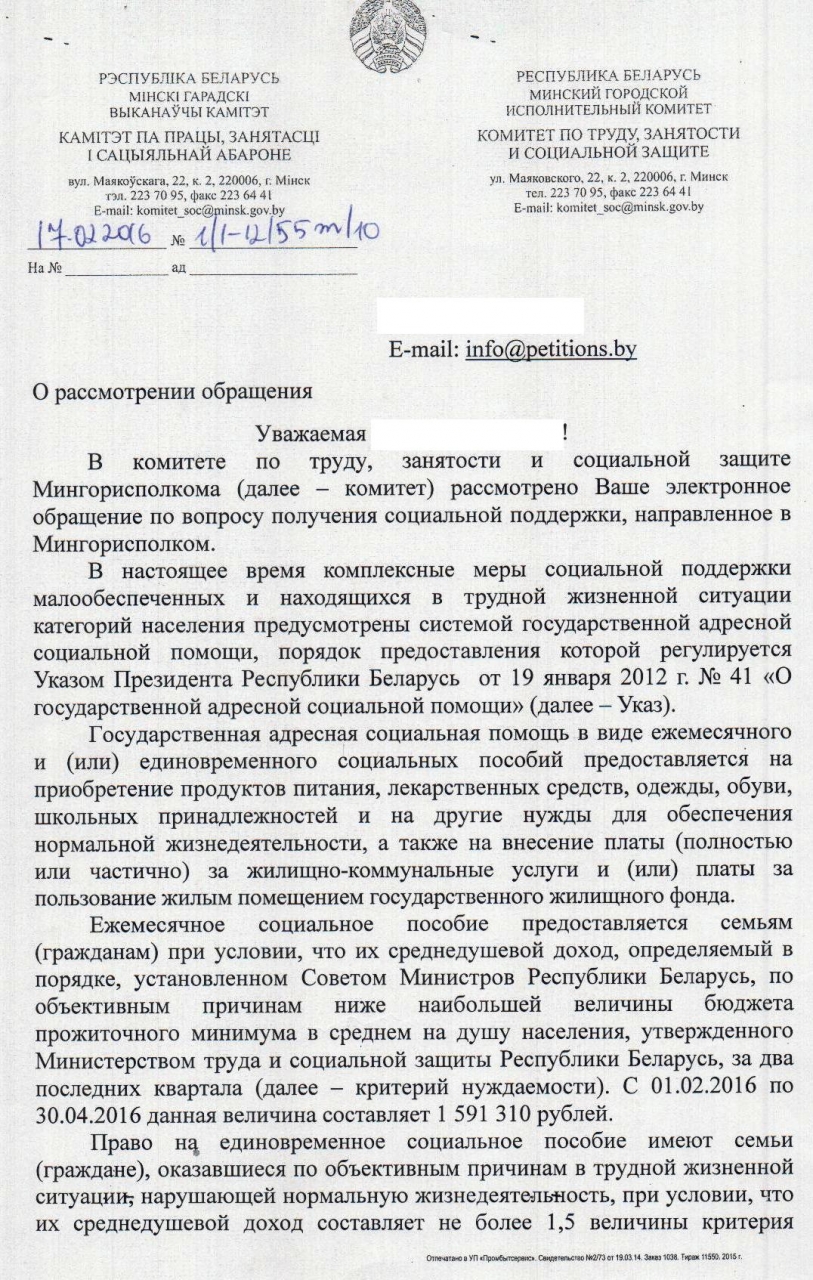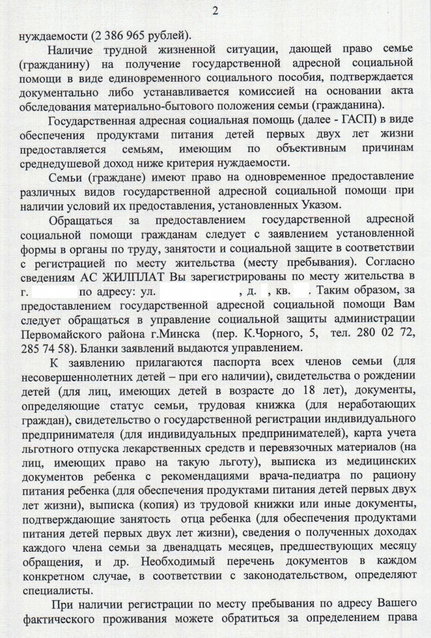 За адресной социальной помощью можно обратиться с приложением необходимых документов в управление социальной защиты по месту жительства.