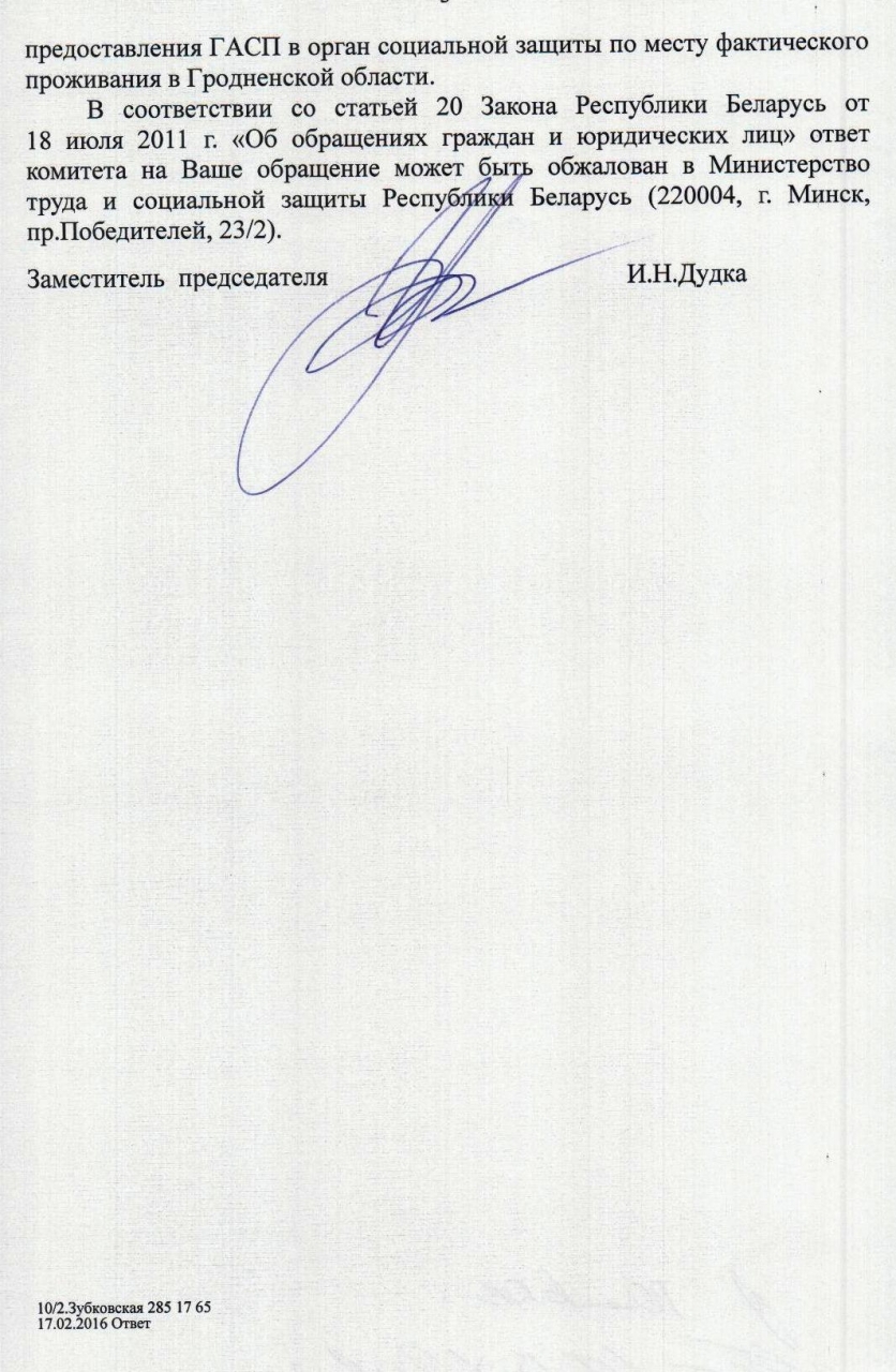 Мой муж Васюкевич Дмитрий Николаевич 1995 г.р., решением суда Октябрьского района г. Минска приговорен к 2 годам ограничения свободы с направлением в ИУОТ №55 г. Минска по ст. 206 ч.2. Он стал на учет 27.11.2015г. Дело в том, что мы молодая семья из 4 человек: дочь Васюкевич Эвелина Дмитриевна (21.12.2013 г.р.) , сын Васюкевич Артем Дмитриевич (29.11.2015 г.р.). Я являюсь сиротой с третьей группой инвалидности. Как Вы понимаете, муж - единственный кормилец в семье. В данный момент мне приходится содержать двоих детей одной, а также арендовать жилье. Единственный доход в семье на данный момент - это детское пособие. Проживать по месту регистрации мужа не предоставляется возможным, так как его мать на пенсии, а также для младшего ребенка нет соответствующего медицинского обеспечения. Как Вы понимаете, нам очень трудно приходится без мужа и конечно же дети скучают без отца.