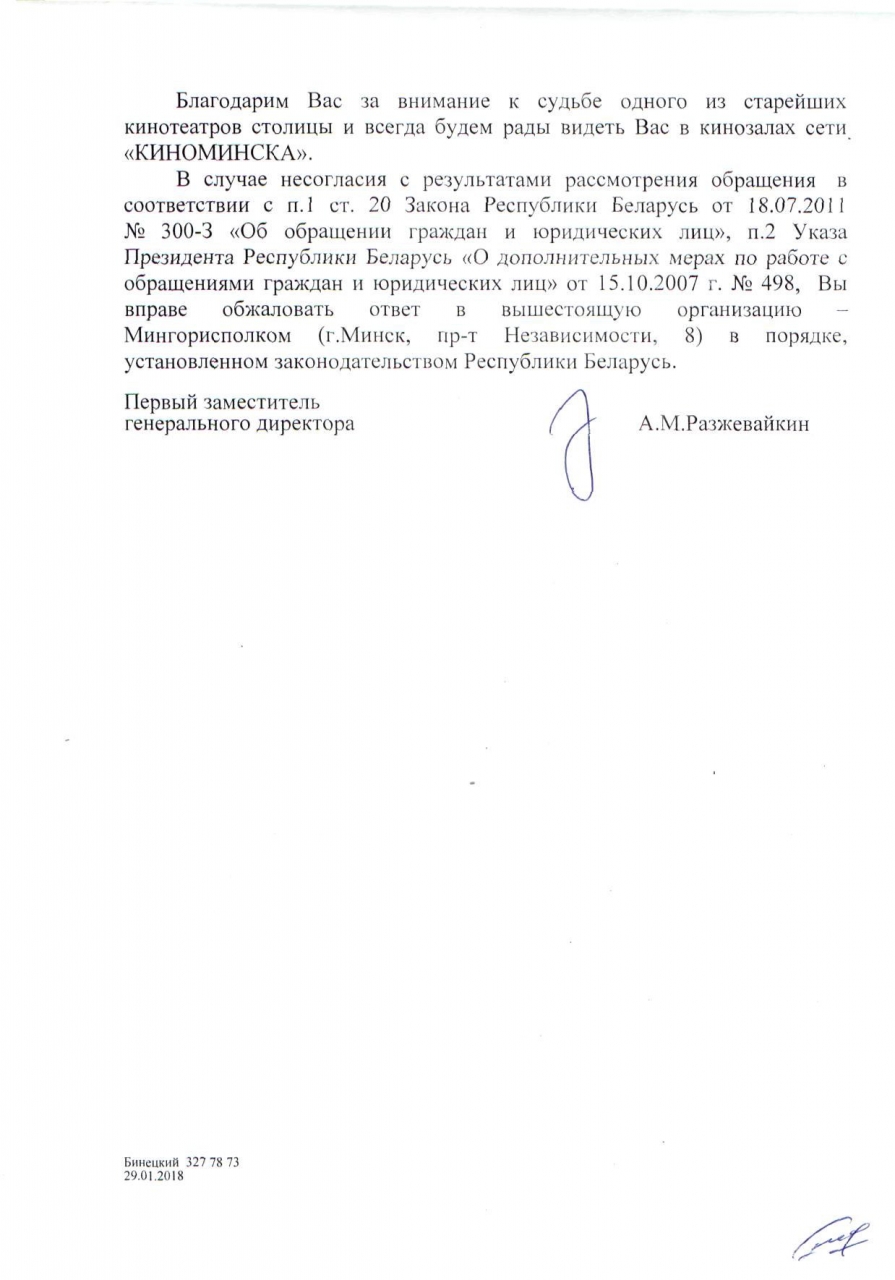 Проанализировав большое количество статей ,комментариев жителей Минска на форумах ,а также статьи (на Онлайнере: https://people.onliner.by/opinions/2017/09/13/mnenie-770 , на ресурсе Виладж Ме: http://www.the-village.me/village/city/report/262697-pobeda Прокопьев призывает голосовать и спасти кинотеатр), хотелось бы внести свои замечания и предложения по дальнейшему развитию Кинотеатра Победа.