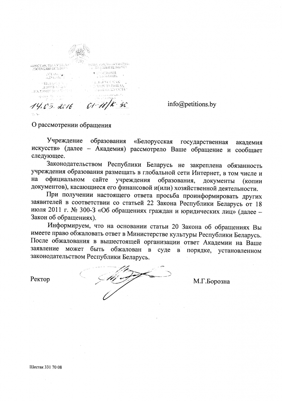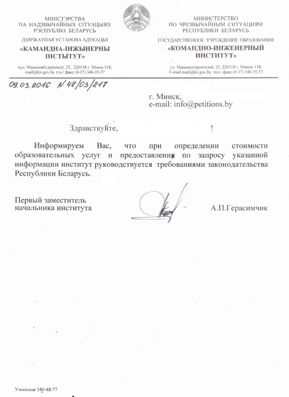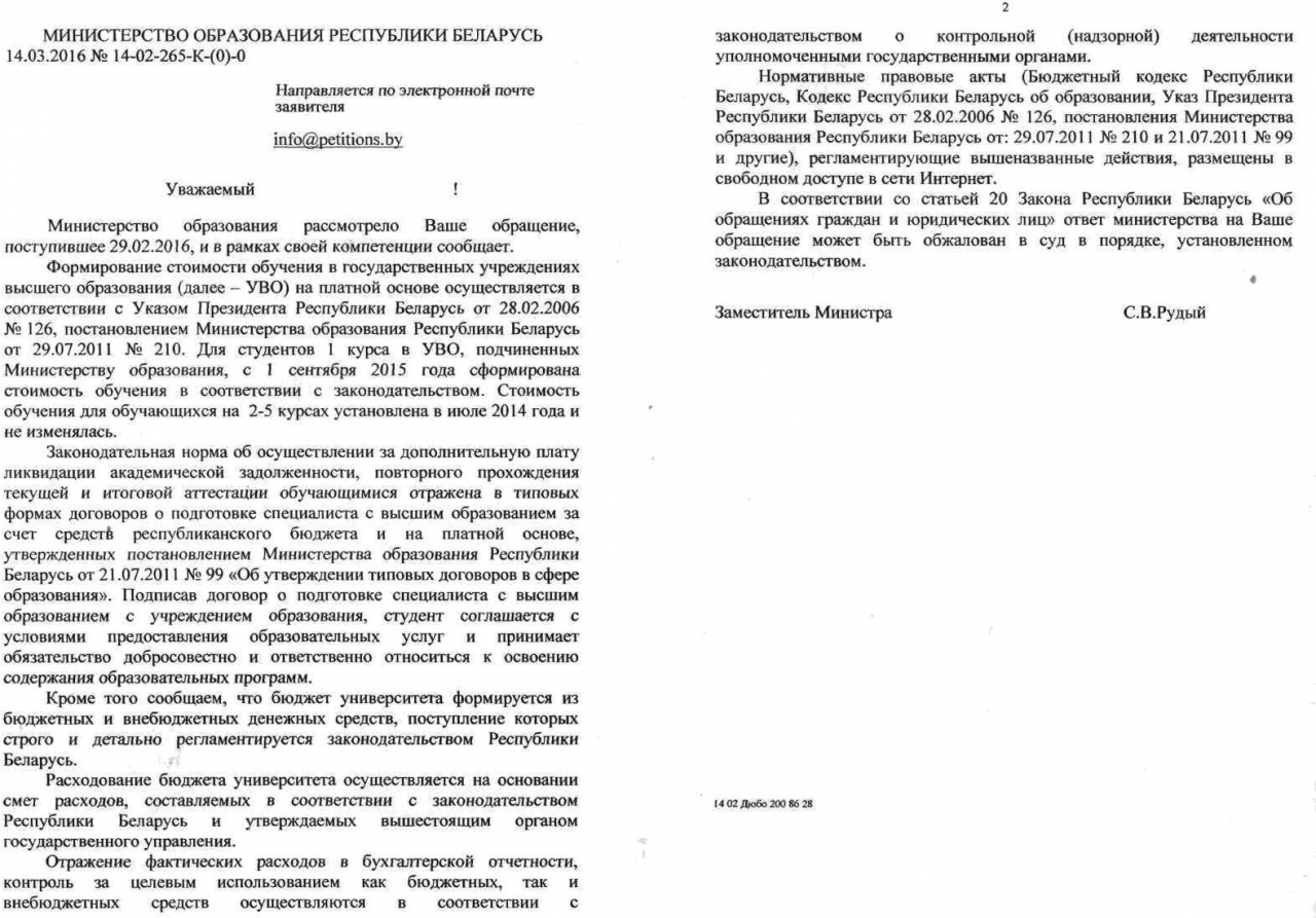 Учитывая изложенное, просим публиковать на сайтах университетов и других ВУЗов бюджеты и отчеты об их исполнении (согласно формам, которые данные учебные заведения предоставляют в Министерство финансов Республики Беларусь и Министерство образования Республики Беларусь).