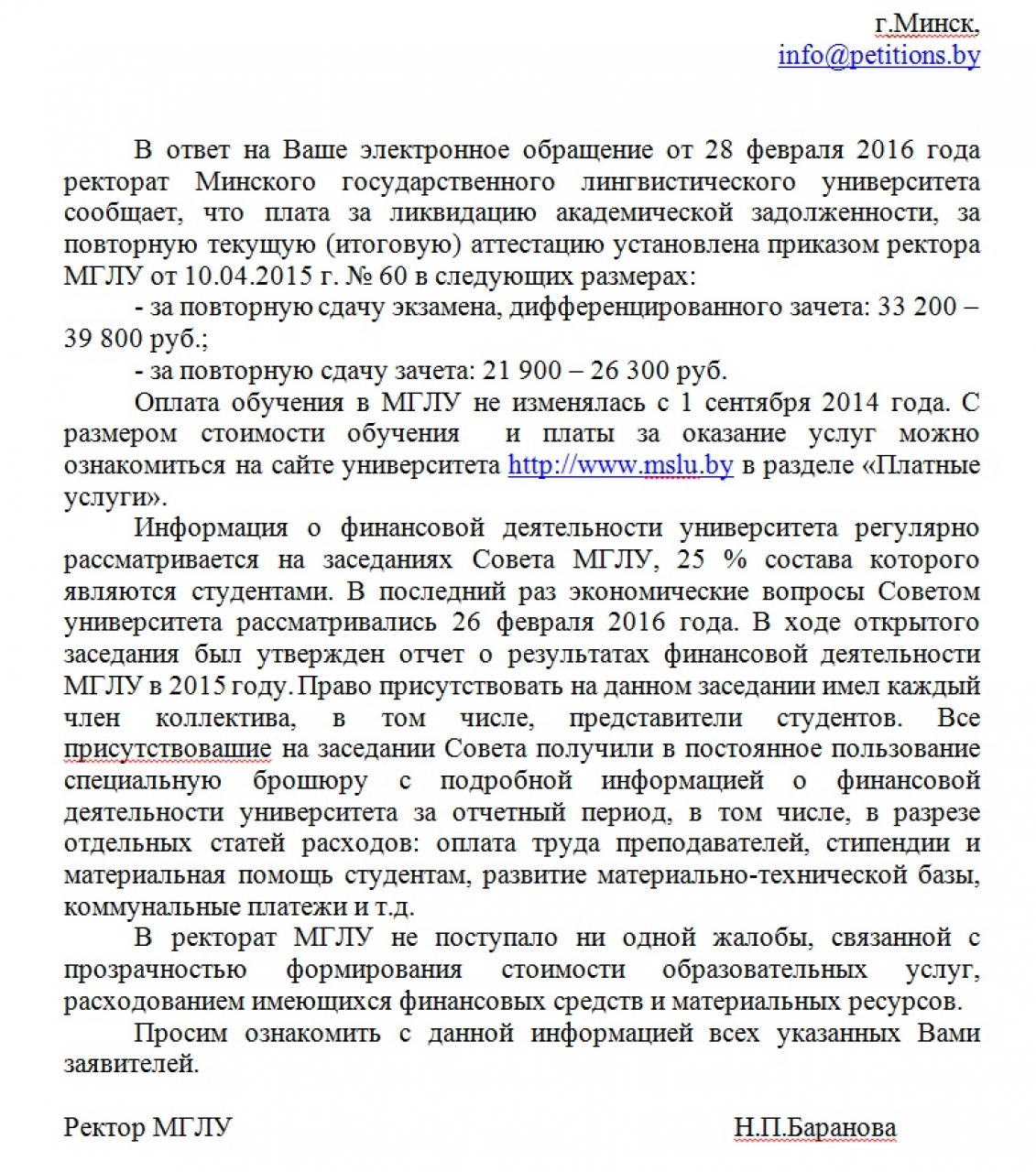 12 ноября 2015 г. ректор БГУ утвердил положение, которое определяет порядок взимания оплаты за ликвидацию академической задолженности и академической разницы. Положение вступило в силу с 1 января 2016 года. Расценки на пересдачи уже известны. Но во многих других ВУЗах нашей страны давно практикуется платная ликвидация академической задолженности и академической разницы. Также оплата за обучение бесконечно растет.