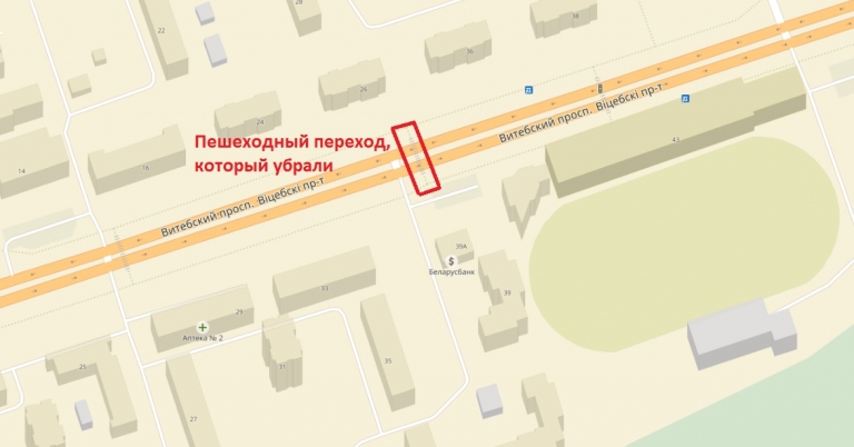 В январе 2018 года закрыли пешеходный переход на Витебском проспекте в Могилеве, ведущий к Беларусбанку (карта прилагается).
