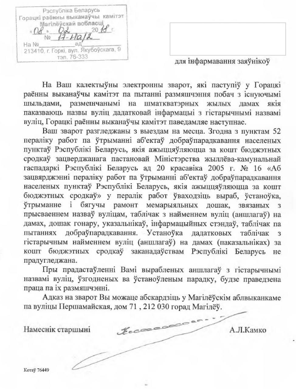 Мы, грамадзяне Беларусі, звяртаемся з прапановай вярнуць гістарычную памяць вуліцам горада Горкі.