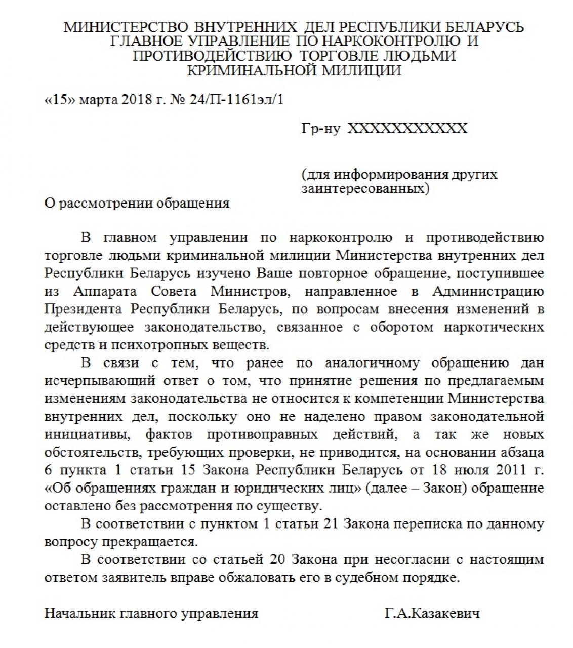 Предлагаем внести изменения в действующее законодательство, предусматривающие отмену наказания за выращивание, хранение и употребление марихуаны в небольших количествах для личных нужд лицами, достигшими возраста 18 лет.
