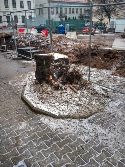 2- й вопрос: Почему на Немиге д. 12 – 14 на единственной детской площадке у ''Дома Мусинского''(были вырублены деревья посаженные в 2004 – 2006 году в качестве компенсационных посадок связанных также с перекладкой коммуникации возле длинного дома (Немига 6 – Немига 14)?