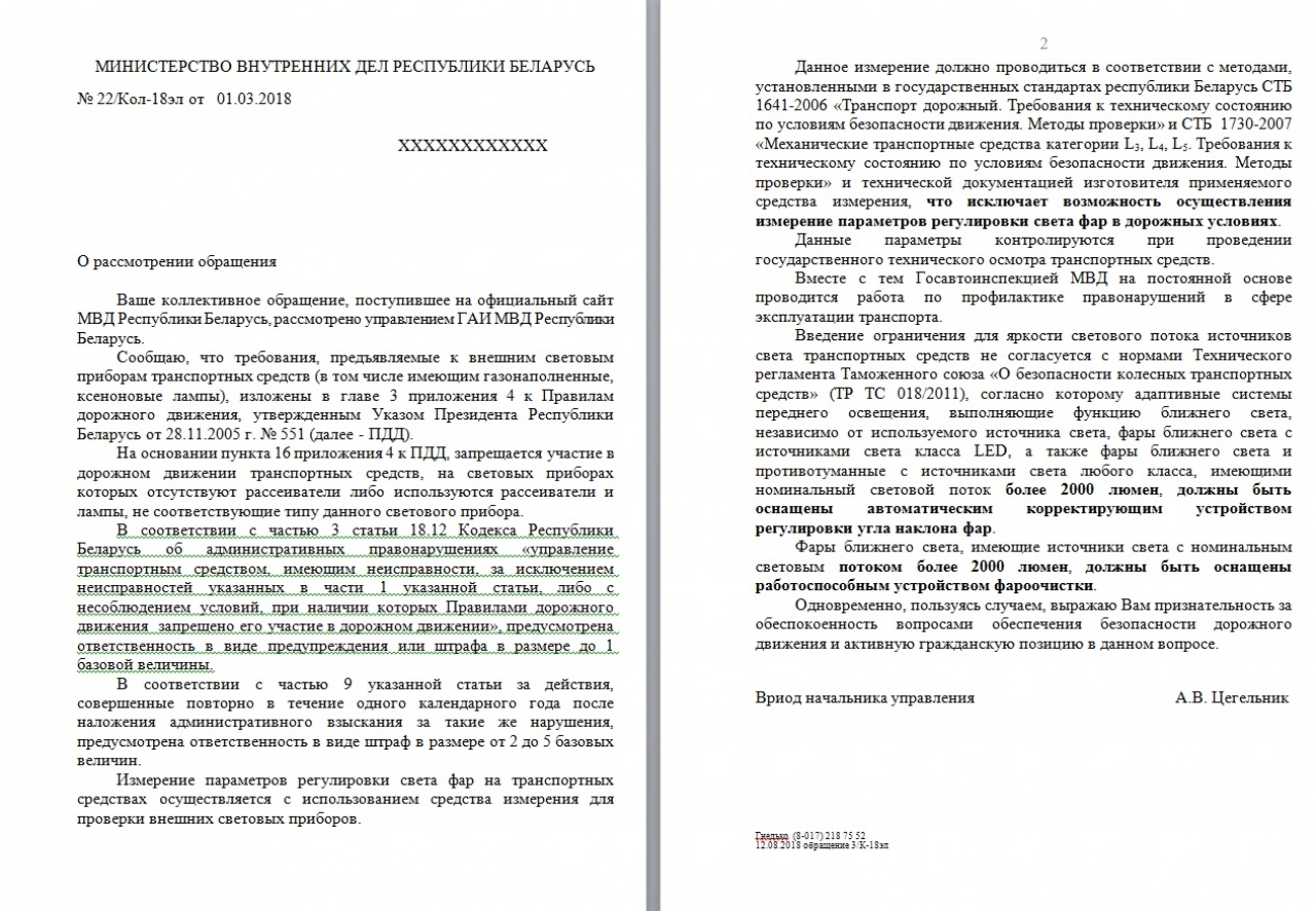 Введение ограничения для яркости светового потока источников света транспортных средств не согласуется с нормами ТР ТС 018/2011, согласно которому ближний свет, независимо от используемого источника света, фары ближнего света с источниками света класса LED, а также фары ближнего света и противотуманные с источниками света любого класса, имеющими номинальный световой поток более 2000 люмен, должны быть оснащены автоматическим корректирующим устройством регулировки угла наклона фар.