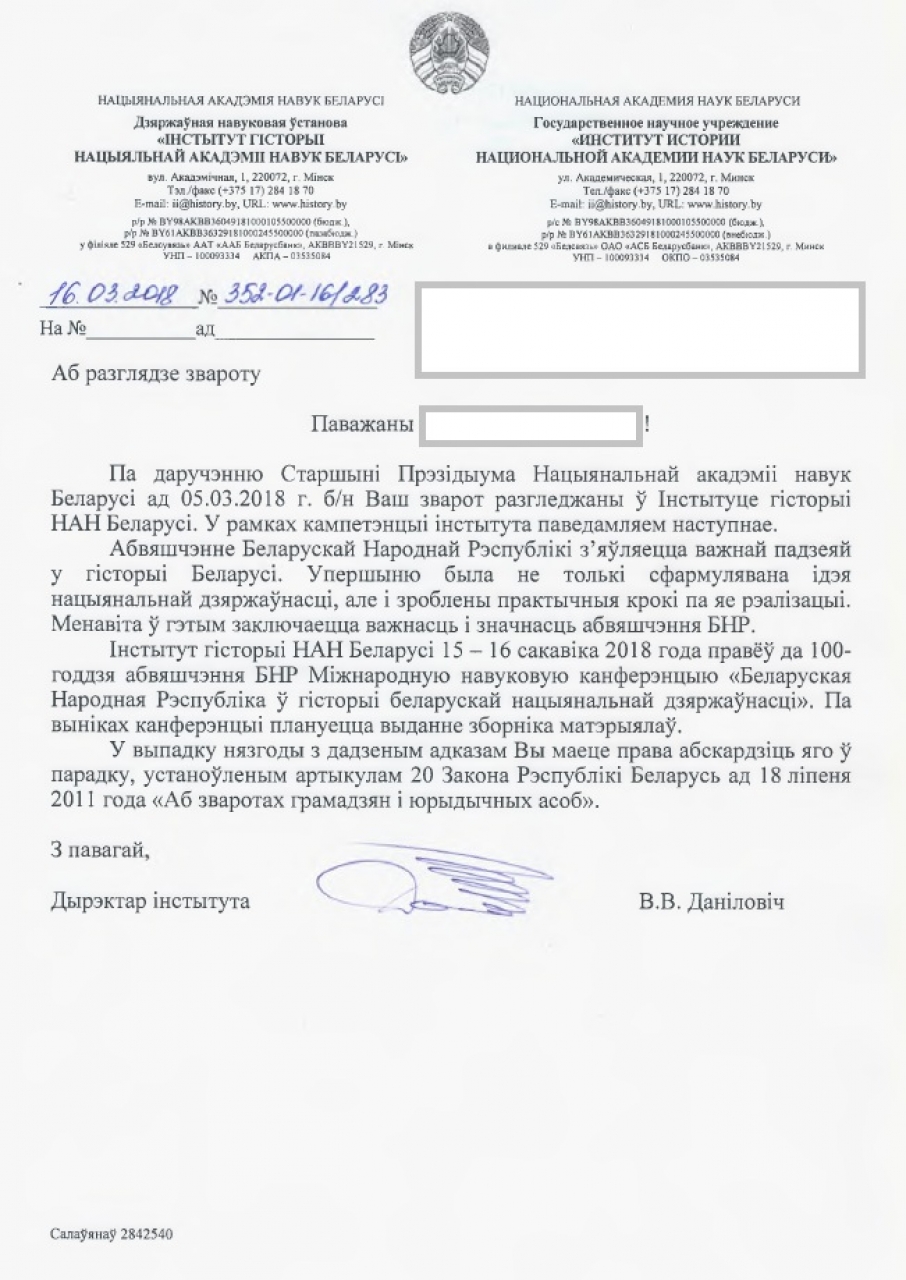 Мы, грамадзяне Беларусі, просім стварыць Рэспубліканскі арганізацыйны камітэт па падрыхтоўцы і правядзенні мерапрыемстваў, прысвечаных 100-годдзю абвяшчэння БНР.