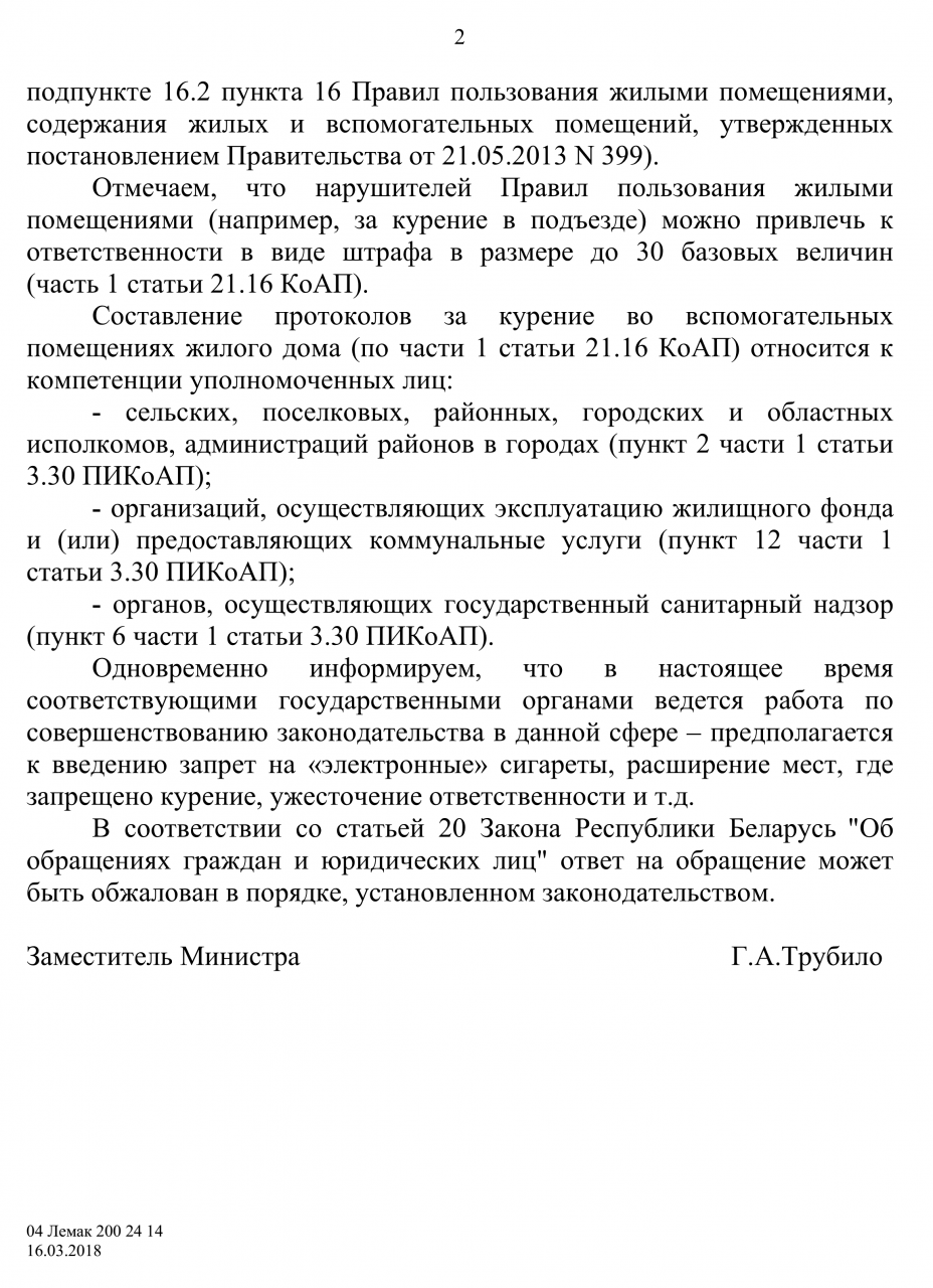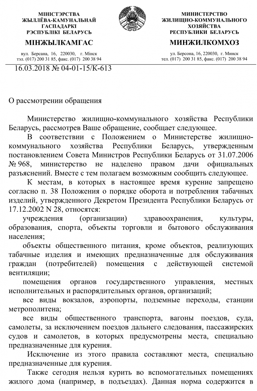 Предлагаем ввести запрет курения на отдельных территориях - ближе 10 от подъезда (ов) жилого(ых) дома(ов), в общих помещениях жилого (ых) дома(ов) для предотвращения воздействия окружающего табачного дыма на здоровье человека, запретить курение, парение, употребление и т.п. табака, сигарет, трубок в том числе "электронных".