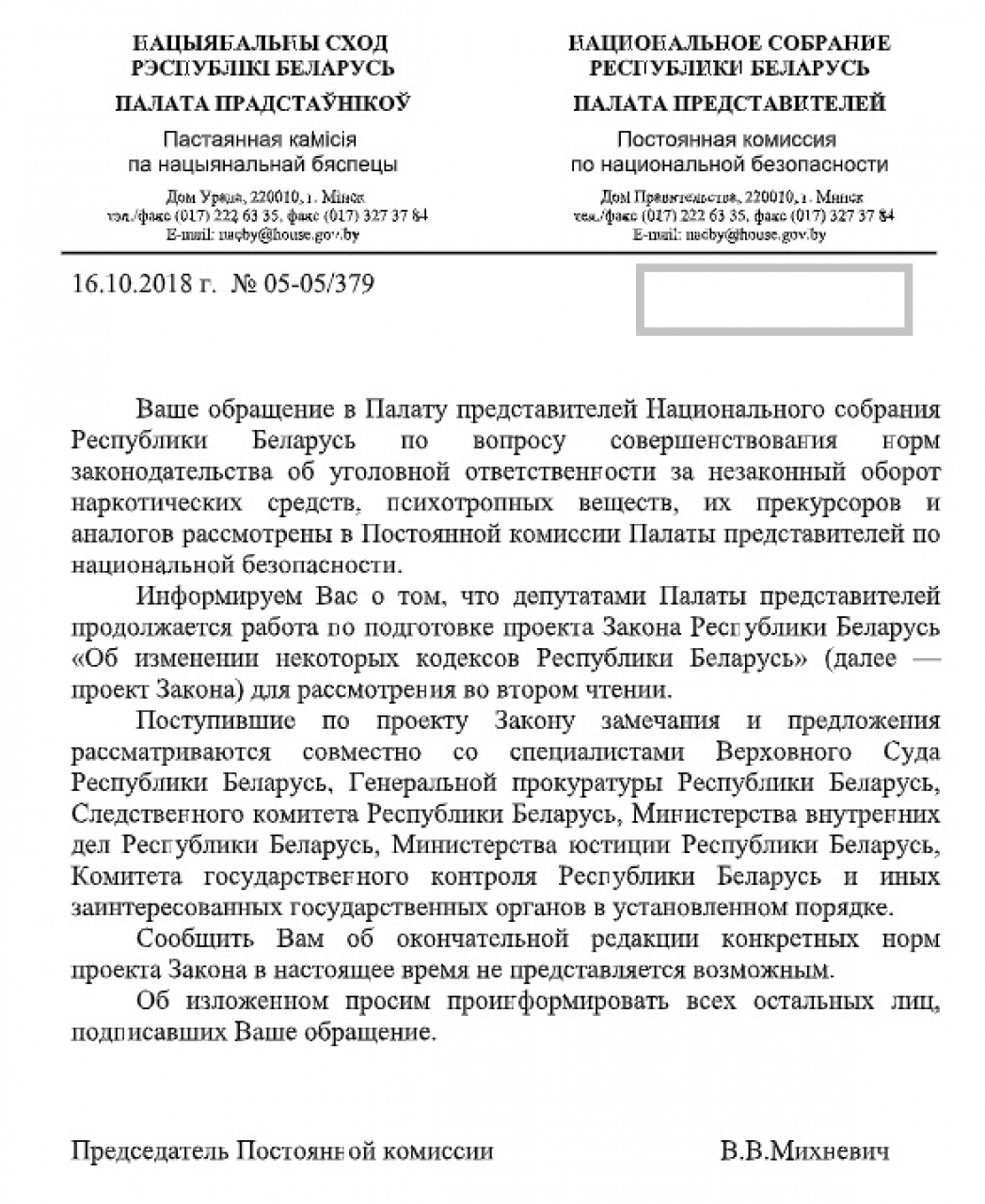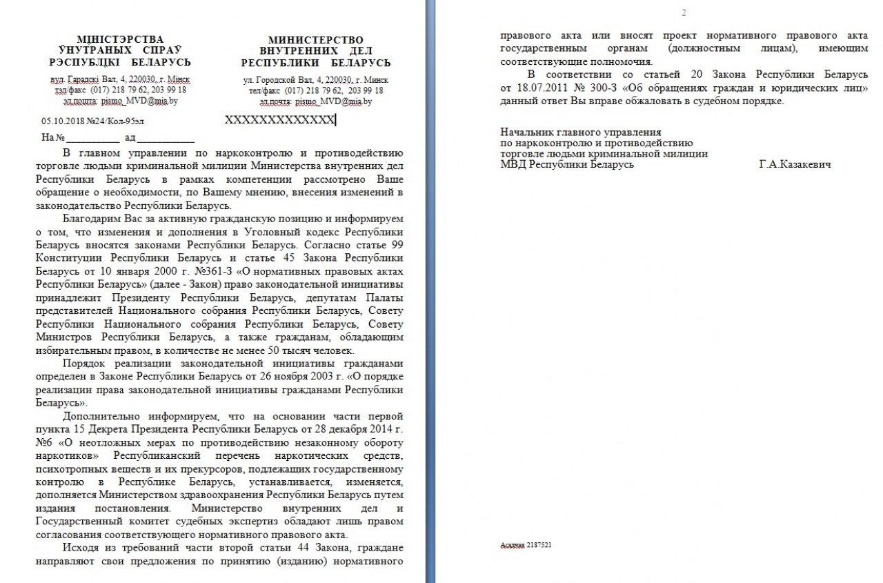Коллективное обращение о необходимости законодательной реформы регулирования оборота наркотических веществ в Республике Беларусь
