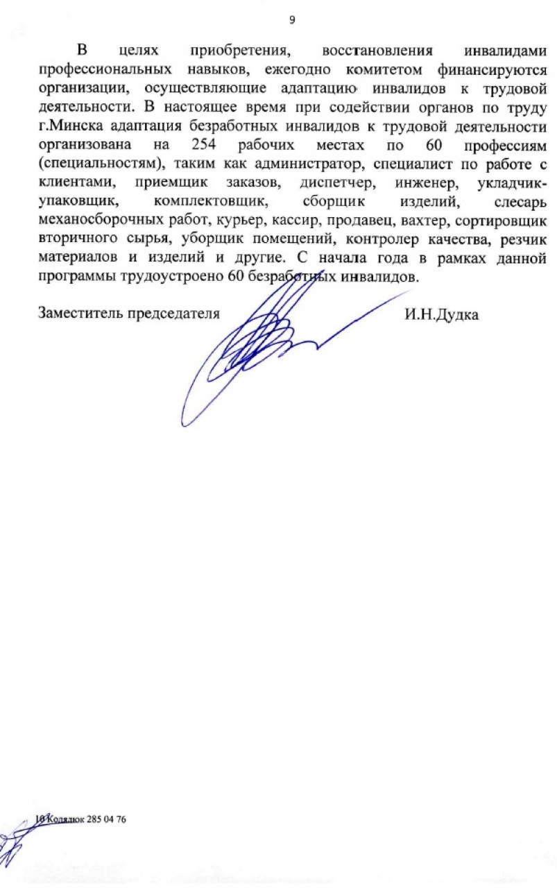 Министерству труда и социальной защиты совместно с Мингорисполкомом рассмотреть вопрос о создании новых рабочих мест людей с ограниченными возможностями.а также прекратить дискриминацию инвалидов способных работать по всем медицинским показаниям(ВКК) ,но при этом нанимателе отказывают в приеме на работу.Создание рабочих мест с достойными условиями труда для любого человека с отграниченными возможностями в городе Минске.Многие люди ,которые могут работать - вынуждены сидеть дома по причине отсутствия ,рабочих мест для людей с ограниченными возможностями.