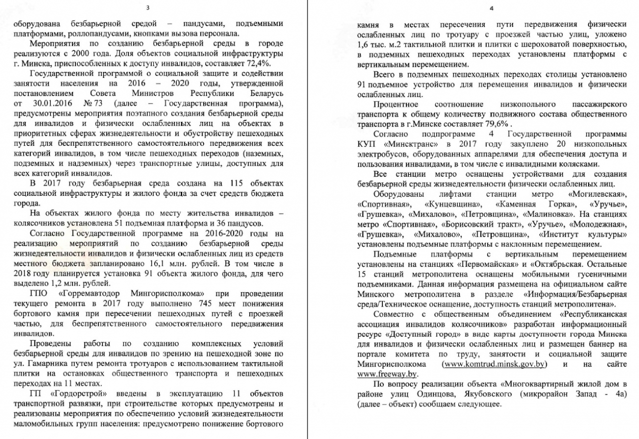 Требуем Мингорисполком принять реальные меры,а не декоративно прописанные,но плохо работающие механизмы) по улучшению ситуации отношения к инвалидам и улучшения без барьерной среды(продолжения её создания) в общественных местах в городе Минске ближайшее время .