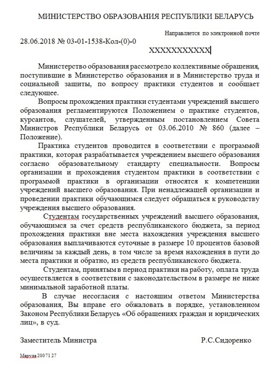 Мнение: сейчас у нанимателя нет гарантий того, что практикант останется работать на его работать после прохождения практики. Поэтому в настоящее время, если наниматель исходит лишь из прагматичных соображений, то ему невыгодно обучать практиканта, так как при этом он будет терять время и деньги, не имея достаточно ясной выгоды. Последствия этого таковы – практиканты и наниматели часто формально относятся к практике, в результате чего Беларусь несёт огромный ущерб.