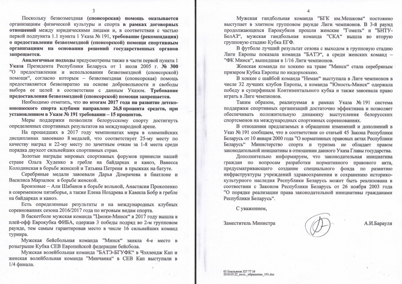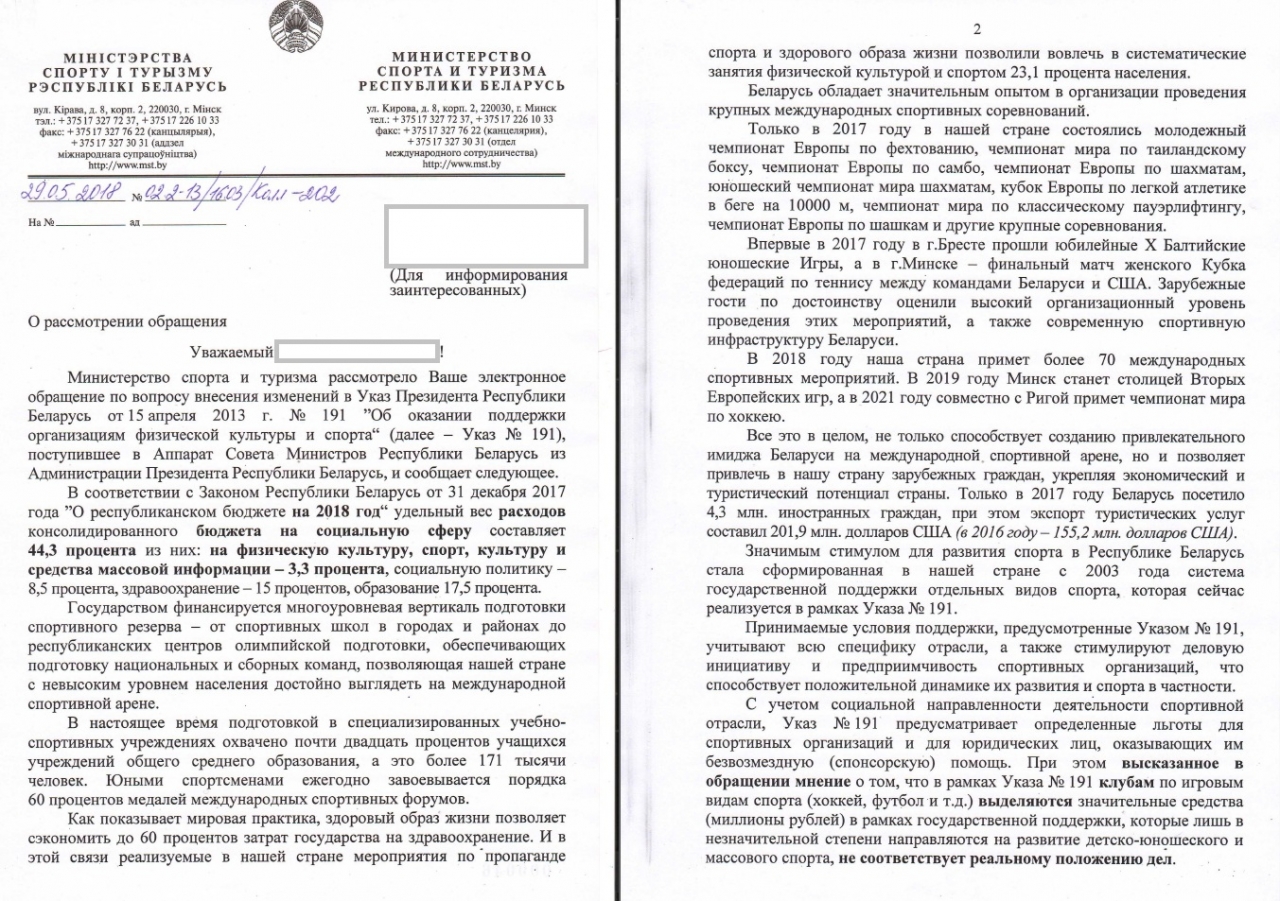 Для соблюдения настоящих интересов жизненно важным является развитие детско-юношеского и массового спорта, развитие здравоохранения. При этом в настоящее время в рамках указа №191 Президента Республики Беларусь спортивных клубам по игровым видам спорта (хоккей, футбол и т.д.) выделяются значительные средства (миллионы рублей) в рамках государственной поддержки, которые лишь в незначительной степени направляются на развитие детско-юношеского и массового спорта. За период действия Указа не было достигнута устойчивая положительная динамика в результатах спортивных клубов и национальных сборных Республики Беларусь в международных соревнованиях (например, хоккейный клуб Динамо Минск занимал с 2013г. 26,9, 18,8,20 места в розыгрыше Континентальной хоккейной лиги, футбольный клуб Шахтер Солигорск лишь один раз за указанный период сумел преодолеть второй отборочный раунд Лиги Европы УЕФА и т.д.), интерес зрителей к первенствам Республики Беларусь по игровым видам спорта крайне низкий, спортивные клубы не смогли достигнуть показателей хотя бы в 80% собственно заработанных средств среди доходов, и при этом не отмечено показателей улучшения здоровья белорусских детей и подростков за указанный период. Опыт предоставления государственной поддержки профессиональным клубам не распространен в европейских странах, которые, тем не менее, достигают высоких результатов в игровых видах спорта на уровне сборных команд (Исландия - в футболе, Словения - в гандболе, хоккее, Литва - баскетбол и т.д.) . Все это говорит о том, что необходимо принять с 2021г. обновленную версию указа Президента Республики Беларусь № 191 «Об оказании поддержки организациям физической культуры и спорта» с целью оказания государственной поддержки исключительно детско-юношескому спорту и прекратить финансирование взрослых профессиональных команд через государственную поддержку. Предлагается, например, ч.5. п.2 принять в следующей редакции: "...направление на развитие детско-юношеского спорта и инфраструктуры соответствующих видов спорта не менее 95 процентов денежных средств, работ, услуг и имущества, в том числе имущественных прав, полученных клубами по игровым видам спорта в соответствии с частью первой подпункта 1.1, 1.2 пункта 1 настоящего Указа, а также подпунктом 1.5 пункта 1 настоящего Указа в части безвозмездной (спонсорской) помощи от государственных организаций, в том числе на развитие детско-юношеского спорта не менее 95 процентов." или в любом другом виде зафиксировать запрет на государственную поддержку взрослых команд клубов по игровым видам спорта.