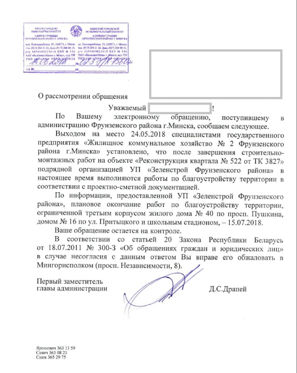 В 2017г. во Фрунзенском р-не г.Минска проводилась реконструкция тепловых сетей "Реконструкция квартала №522 от ТК - 3827". После окончания работ, в местах их проведения, должен был быть восстановлен природный ландшафт, т.е. восстановлен плодородный слой земли и засеяна трава. В настоящее время на территории, ограниченной домом №40-3 по пр.Пушкина, №16 к.1 по ул. Притыцкого и школьным стадионом, ландшафт напоминает собой "марсианский". Рядом с этой "пустыней" располагается детская игровая площадка.