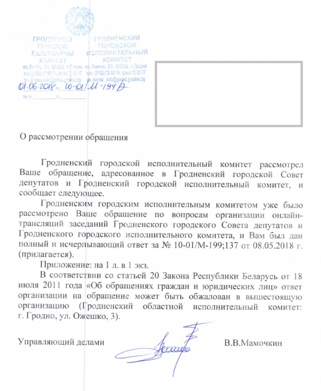 В целью ознакомления граждан города (в соответствии со ст. 34 Конституции Республики Беларусь) с информацией о работе исполнительной и законодательной власти просим депутатов Гродненского городского совета и руководство Гродненского горисполкома, выполнить следующие мероприятия: