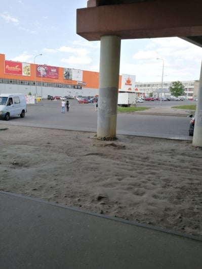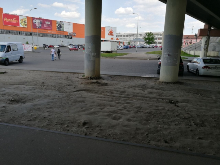 Как видно на фото - нет нормальных тротуаров и пешеходных связей от ТЦ Корона и остановочных пунктов общественного транспорта к подземному переходу, вещему к ст.м.Молодежная и остановочному пункту "Минск Северный".