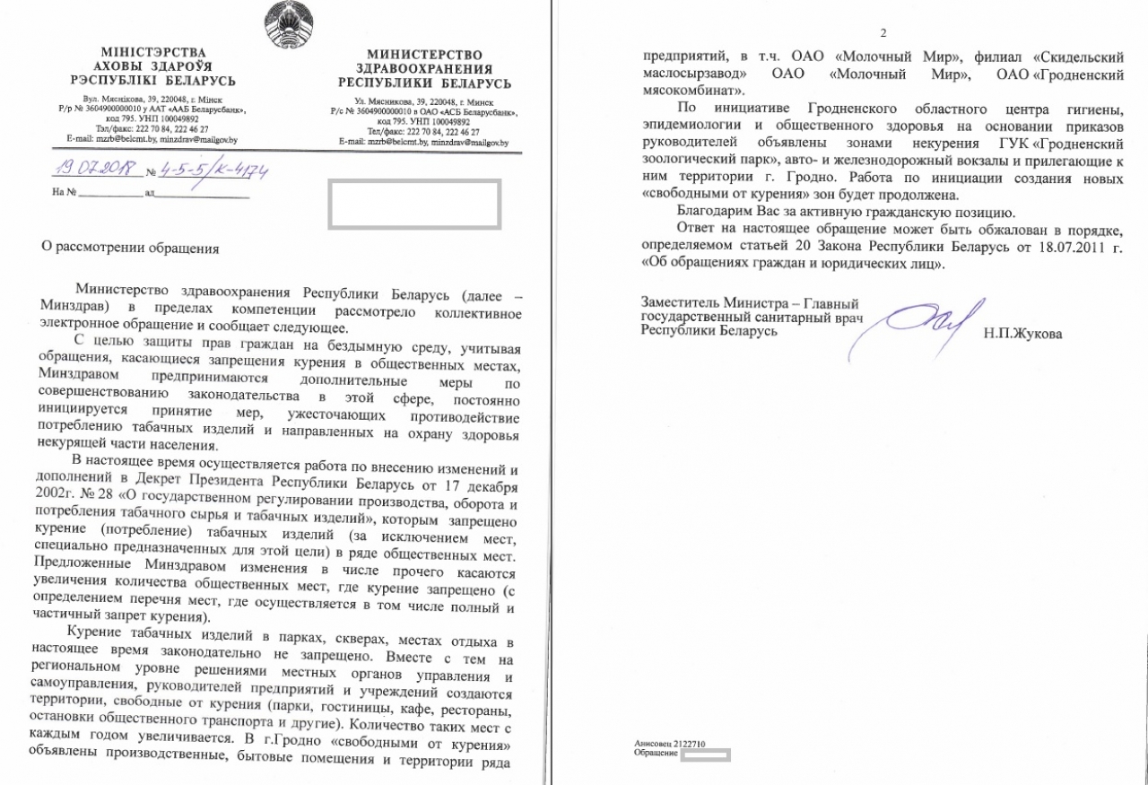 Просьба также рассмотреть возможность внесения ограничений на курение в подобных местах по всей Республике.