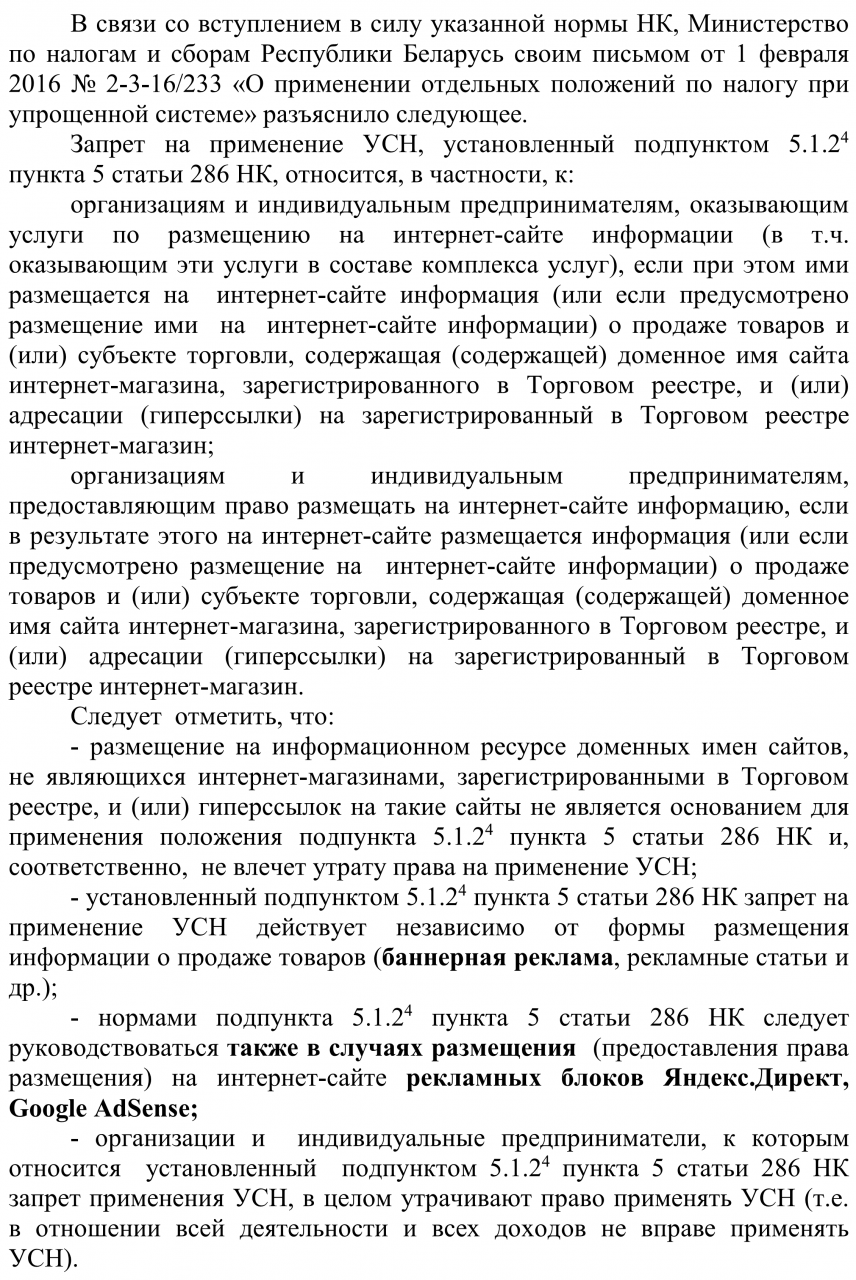 Однако, следует отметить, что нормами подпункта 5.1.24 пункта 5 статьи 286 НК (это запрет применения УСН) следует руководствоваться также в случаях размещения (предоставления права размещения) на интернет-сайте рекламных блоков Яндекс.Директ, Google AdSense.