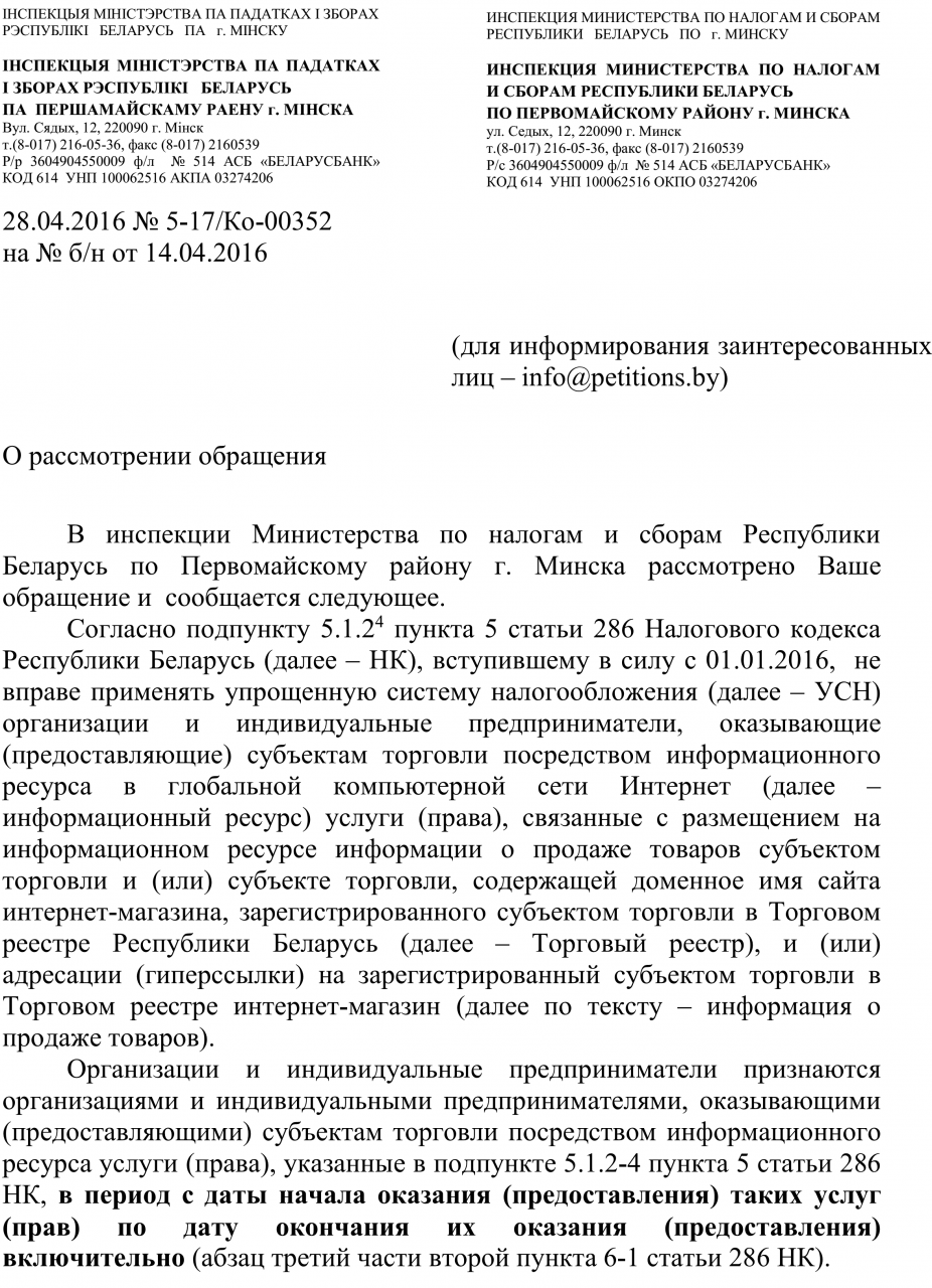 В ИМНС дали такой же размытый ответ, из которого понятно что они сами не в курсе, а на простой вопрос — могу ли я интернет–магазин рекламировать — сказали возможно.