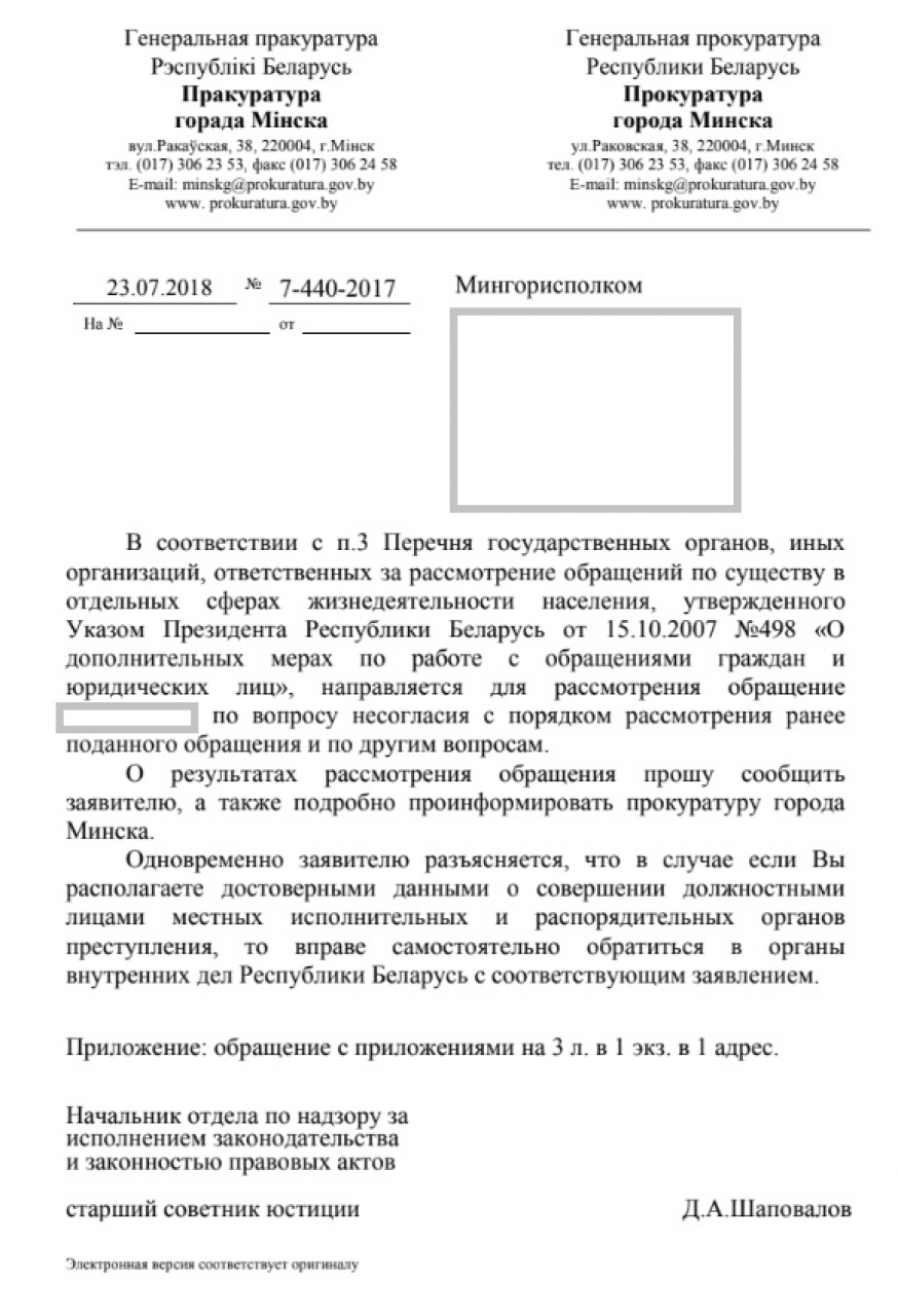 Мингорисполкому поручено подробно проинформировать прокуратуру о результатах рассмотрения.