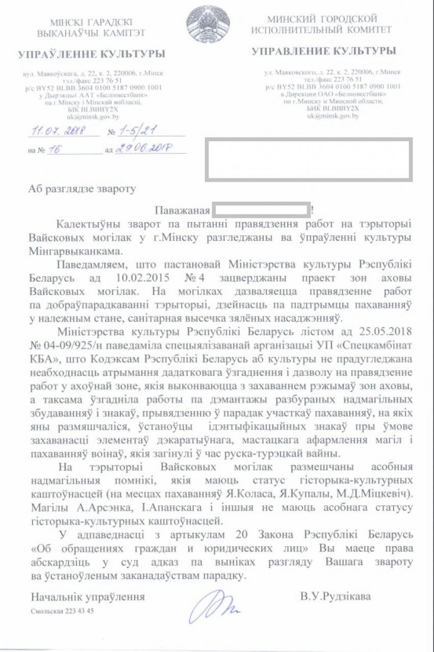 Летам 2018 года распачаты працы па гэтак званым упарадкаванні Вайсковых могілак у г. Мінску (вуліца Казлова). Дадзены некропаль – гісторыка-культурная каштоўнасць Рэспублікі Беларусь (3 катэгорыя), з’яўляецца адным з самых унікальных ў беларускай сталіцы. Заснаваныя ў 1840-х гадах, яны стаяць у адным шэрагу з Літаратарскімі масткамі ў Санкт-Пецербургу і Нова-Дзявочымі могілкамі ў Маскве, могілкамі Пер-Лашэз у Парыжы і Роса ў Вільні, яны сталі месцам апошняга спачыну Янкі Купалы і Якуба Коласа, Паўлюка Труса і Кузьмы Чорнага, Усевалада Ігнатоўскага і Яўгена Барычэўскага.