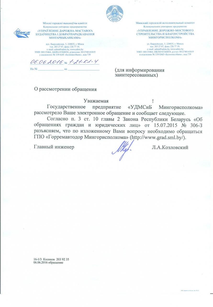 Необходимо обращаться в Горремавтодор Мингорисполкома