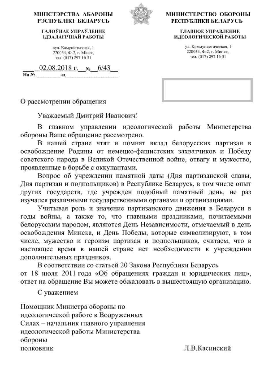 Пока еще живы эти люди, в память об уже ушедших от нас героях, в год 77-летия начала Великой Отечественной Войны и в преддверии Дня независимости Беларуси предлагаем ввести такую памятную дату и у нас, потомков белорусских партизан, чтящих их бессмертный подвиг.