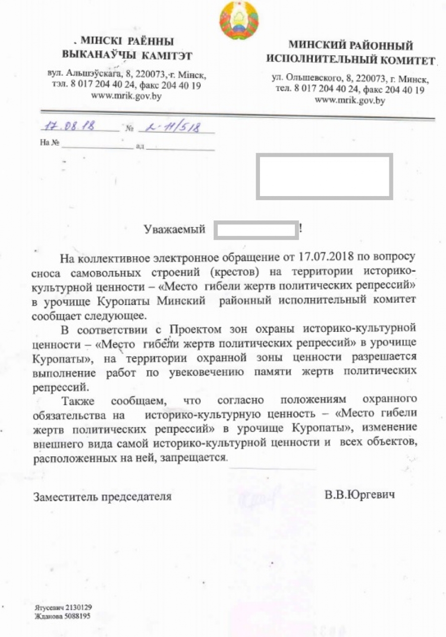 Просим Вас навести порядок в зоне историко - культурной ценности "Куропаты" путем сноса самовольных строений (крестов).