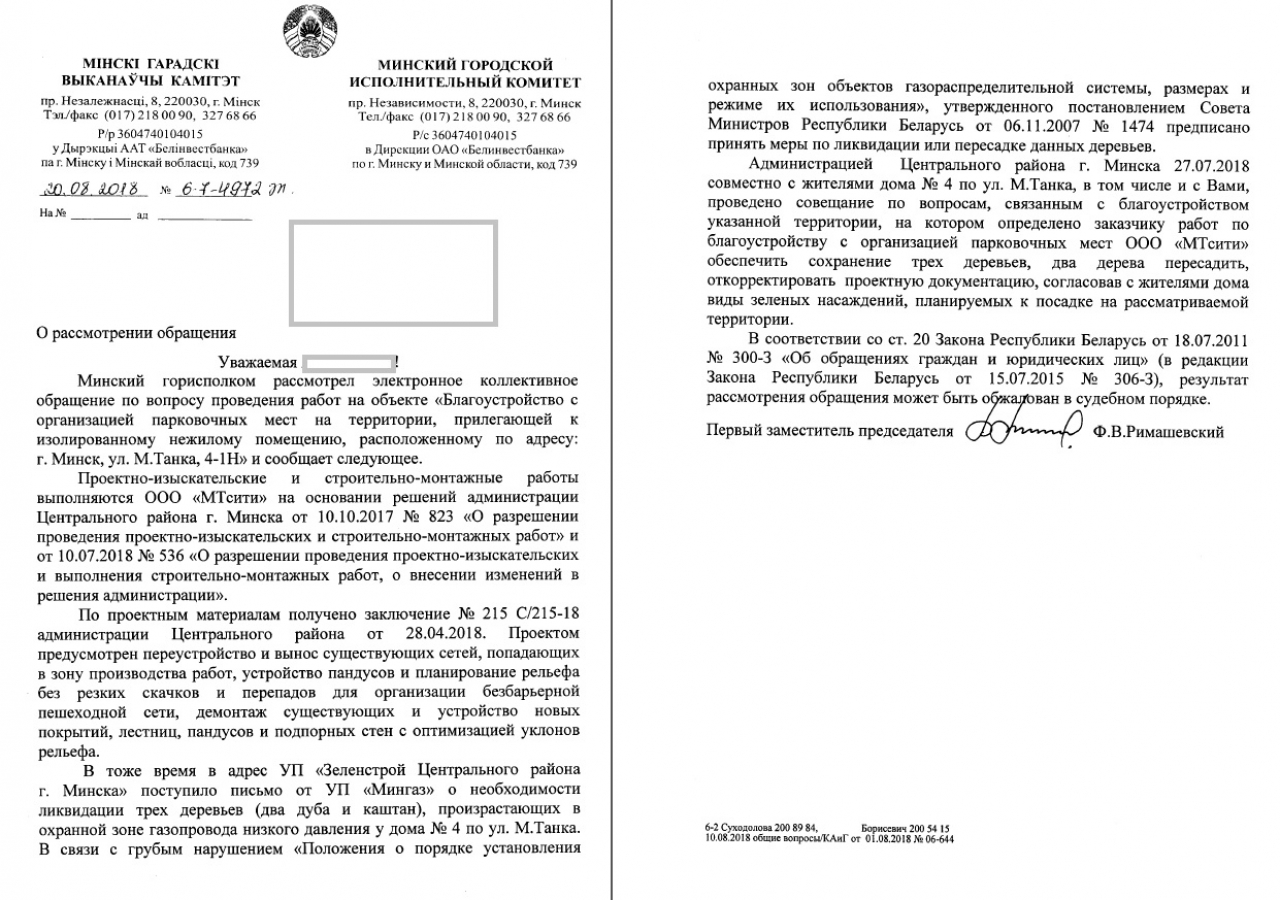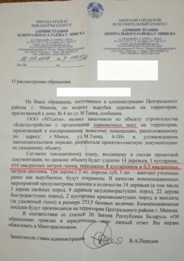 На улице Максима Танка 4 живёт моя мама (красный дом в паре метров от метро Фрунзенская). Там собираются вырубить все деревья ради парковки. Вырубка деревьев уже запланирована Администрацией Центрального района.