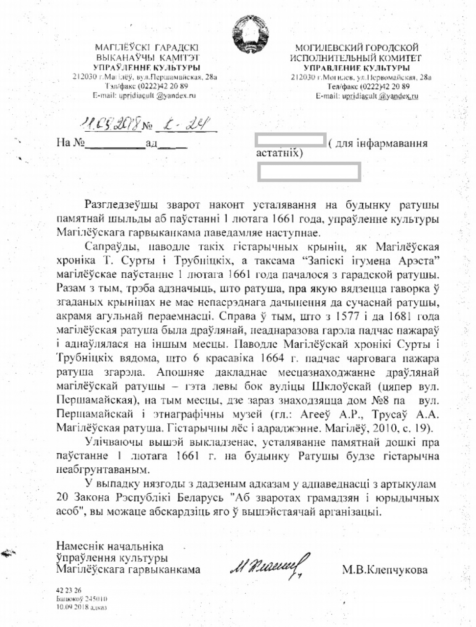 Iснуючая ратуша не тая самая, што была пры паустаннi, таму усталяванне дошкi будзе гiстарычна неабгрунтаваным