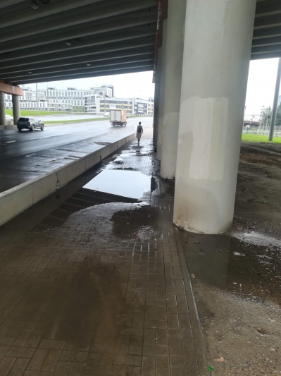 2. Из-за низкого уровня тротуара вода не стекает на ПЧ через специальные отверстия и скапливается на тротуаре.