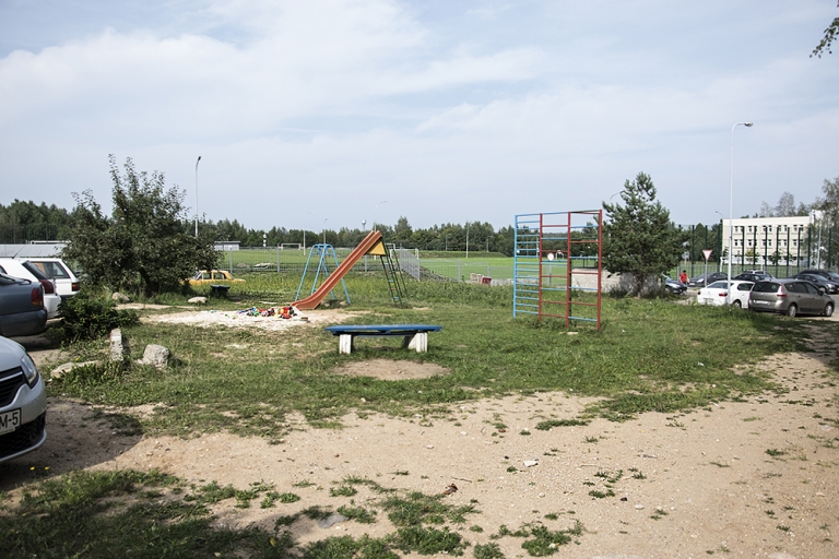 На территории детской площадки нет табличек для запрета выгула собак, поэтому многие выгуливают собак без опаски нарушения закона. На детской площадке были демонтированы карусели, но взамен не установлены другие, площадка никак не ограждена от проезжей части дороги, трава на территории коммунальными службами не подстригается.