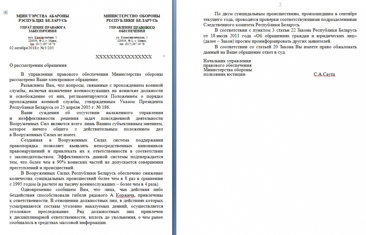 В связи с тем, что в последнее время участились случаи суицида в армии (за последний месяц (сентябрь) - 2 случая), а также по причине попустительства и отсутствия налаженного управления Министерством обороны, мы, нижеподписавшиеся просим отправить в отставку министра обороны Равкова Андрея Алексеевича.