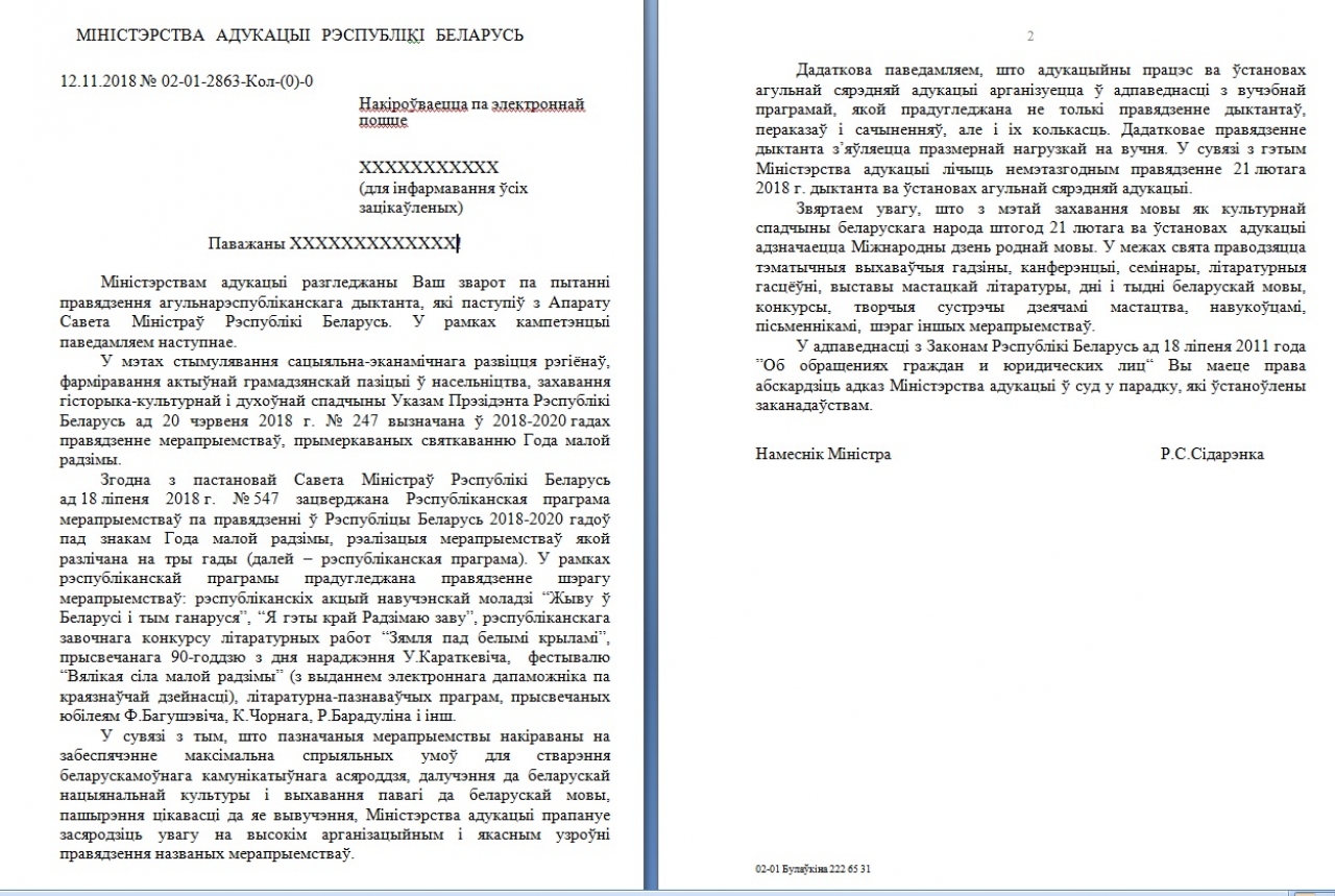У адпаведнасцi з арт. 2 Закона «Аб мовах» Рэспублiка Беларусь забяспечвае ўсебаковае развiццё i функцыянаванне беларускай i рускай моў ва ўсiх сферах грамадскага жыцця, праяўляе дзяржаўны клопат аб свабодным развiццi i ўжываннi ўсiх нацыянальных моў, якiмi карыстаецца насельнiцтва рэспублiкi.