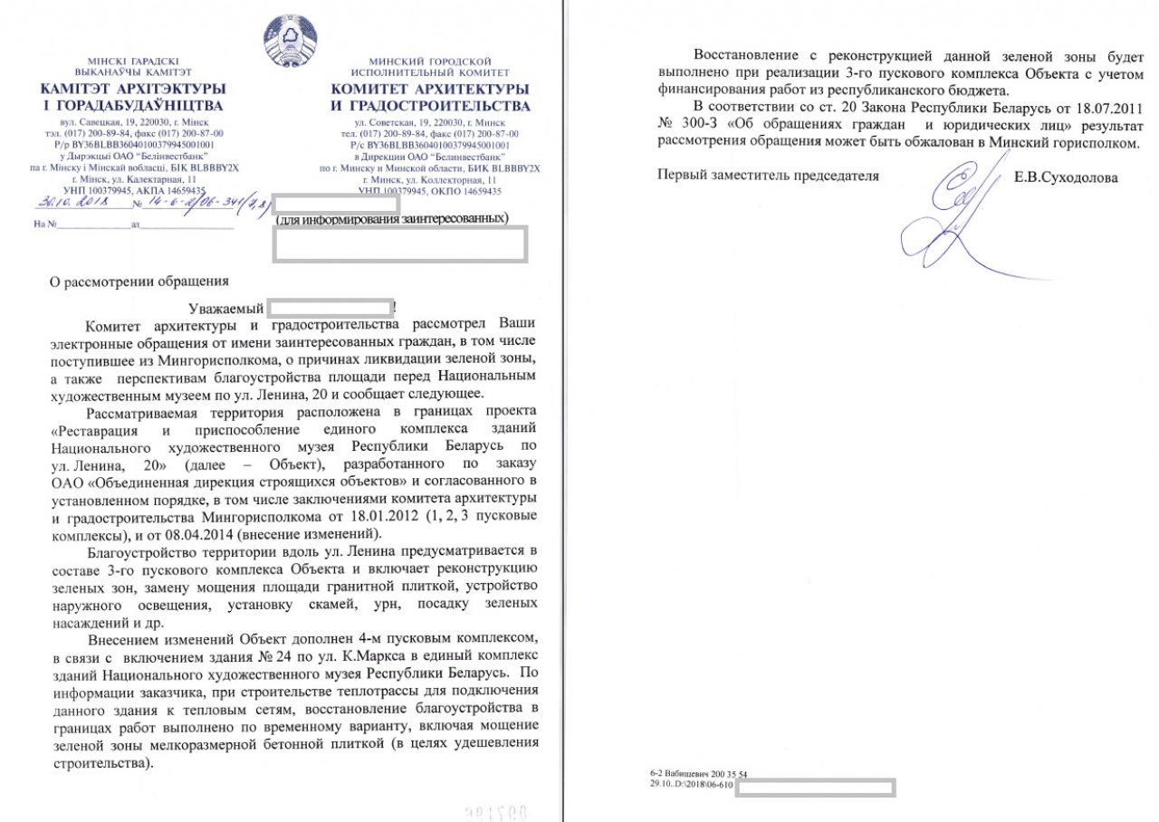 Хотелось бы обратить внимание на "исчезновение" летом 2017 года озеленённой территории(клумбы) возле Национального художественного музея в Минске (фото прилагаются).
