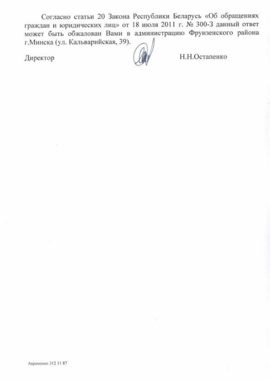 Так же в статье на сайте www.kp.by/online/news/2308488/ по данному поводу прокурор г.Минска Сергей Хмарук говорит, что "проблема должна решаться. По крайней мере, прокуратура будет за этим следить. Надо более жестко требовать от застройщика высаживать кусты и деревья".