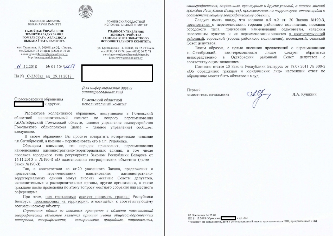 Теги: переименование топонимика Октябрьский райисполком Гомельская область гпОктябрьский